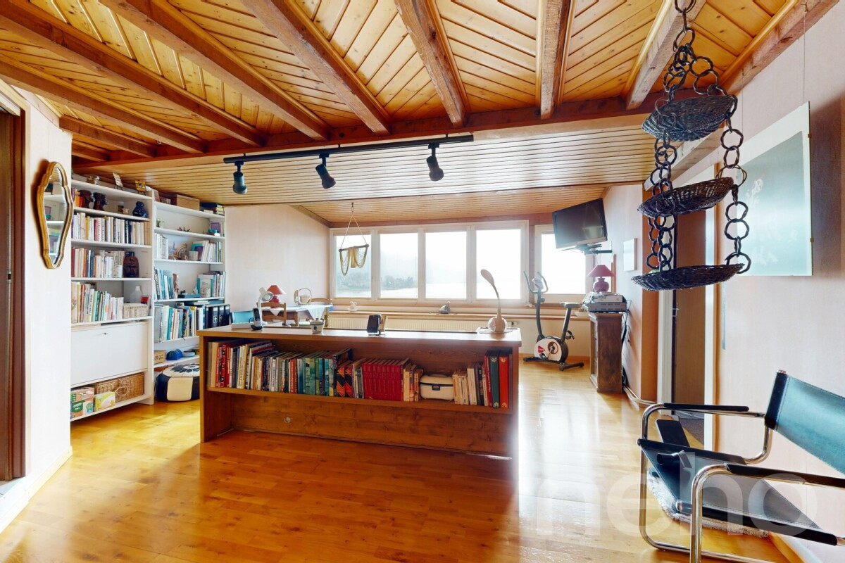 Au rez-de-chaussée, se trouve un appartement de 3,5 pièces avec balcon donnant sur le lac. Les premier et deuxième étages abritent un spacieux duplex de 5,5 pièces, avec un séjour orienté plein lac, une cuisine indépendante, deux chambres, dont une suite parentale, un bureau et un balcon offrant une belle vue dégagée.Enfin, un appartement de 2,5 pièces, avec entrée indépendante, donne sur le jardin. Plusieurs pièces annexes complètent ces espaces, dont une cave. L'immeuble dispose également d'un atelier de plus de 160 m² actuellement non aménagé, offrant un important potentiel d'agrandissement ou de création de nouveaux logements. Un grand jardin plat, rare au centre du Pont, complète agréablement l'ensemble, idéal pour un usage familial ou locatif.En sous-sol, un vaste parking construit récemment permet de stationner jusqu'à 12 véhicules, offrant une source de revenu complémentaire par la location des places.Des panneaux solaires ont déjà été installés, constituant une première amélioration sur le plan de la performance énergétique.Ce bien représente une opportunité intéressante pour un investisseur ou un propriétaire souhaitant redonner vie à un immeuble de caractère, dans une localisation privilégiée en bord de lac.