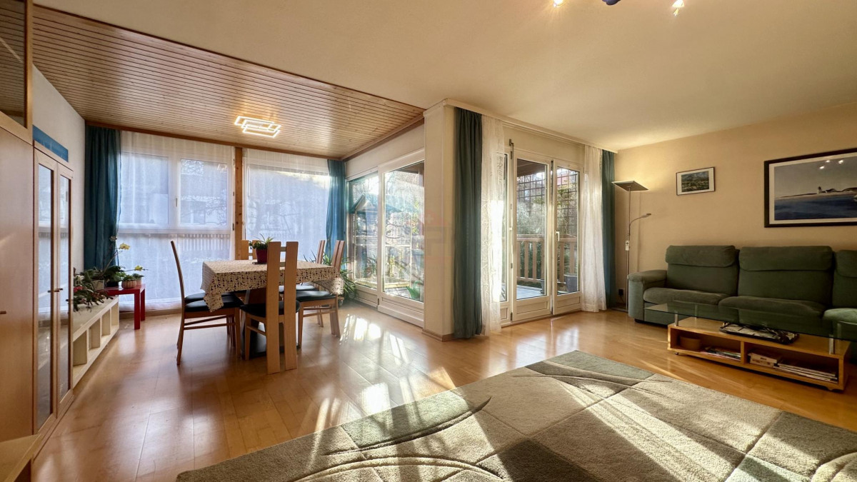 Le séjour lumineux exposé plein sud bénéficie d'un ensoleillement optimal et crée un espace de vie chaleureux et convivial.