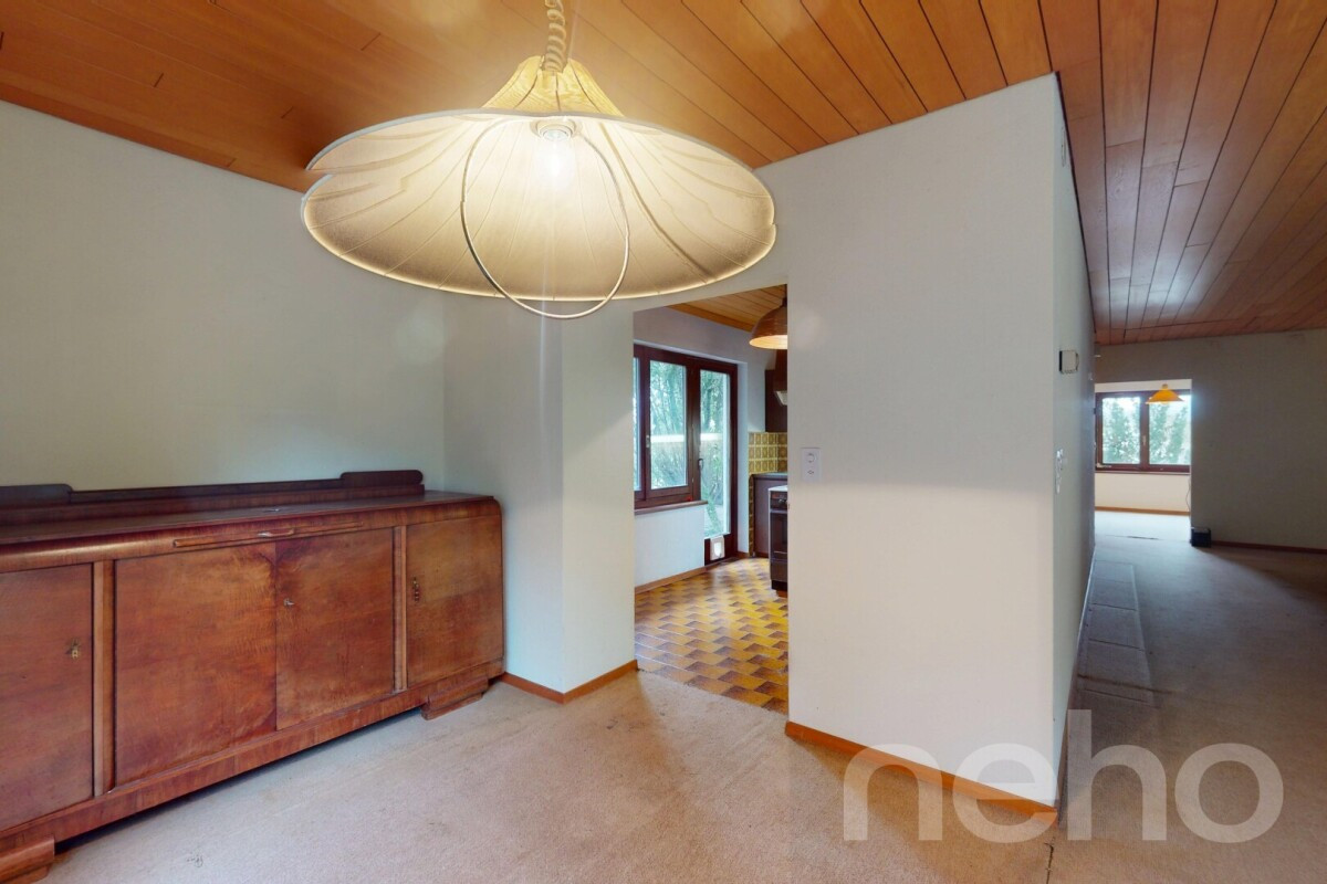 In erhöhter Lage, am Ortsausgang von Laufen in Richtung Delémont, präsentiert sich dieses freistehende Einfamilienhaus mit enormem Potenzial. Obwohl das Haus renovierungsbedürftig ist, bietet es eine solide Bausubstanz und eine großzügige Raumaufteilung, die Ihnen zahlreiche Gestaltungsmöglichkeiten eröffnet. Das große Grundstück und die unverbaubare Sicht schaffen zudem eine einzigartige Atmosphäre der Privatsphäre und Ruhe.Das Haus erstreckt sich über zwei Etagen, die jeweils separat zugänglich sind und damit zahlreiche Nutzungsmöglichkeiten bieten ? sei es für Mehrgenerationenwohnen, Wohnen und Arbeiten unter einem Dach oder als potenzielle Mieteinheit. Jede Etage ist mit einer eigenen Küche und einem Badezimmer ausgestattet. Besonders praktisch: Die Erdgeschosswohnung ist rollstuhlgängig, was zusätzlichen Komfort bietet. Der bereits isolierte Dachboden bietet noch weitere Möglichkeiten zur Erweiterung des Wohnraums.Das über 1'000 m² große Grundstück in der Wohnzone W2b bietet ein beeindruckendes Maß an Privatsphäre und ermöglicht eine Vielzahl von Nutzungsmöglichkeiten im Außenbereich ? sei es für einen großzügigen Garten, Freizeitgestaltung oder als Ruheoase. Hier genießen Sie die ungestörte Aussicht und können die Sonne in vollen Zügen genießen.Diese Liegenschaft eignet sich ideal für Käufer, die ein Zuhause mit viel Gestaltungsspielraum suchen und bereit sind, das enorme Potenzial dieses Hauses zum Leben zu erwecken. Wenn Sie auf der Suche nach einem Objekt sind, das mehr zu bieten hat, als es auf den ersten Blick zeigt, und den Raum für Ihre eigenen Visionen bietet, dann könnte dieses Haus Ihr neues Zuhause sein.Zögern Sie nicht, uns für eine Besichtigung zu kontaktieren und die ungenutzten Möglichkeiten dieses einzigartigen Hauses selbst zu entdecken.