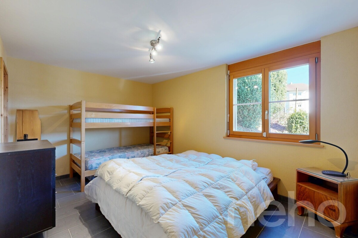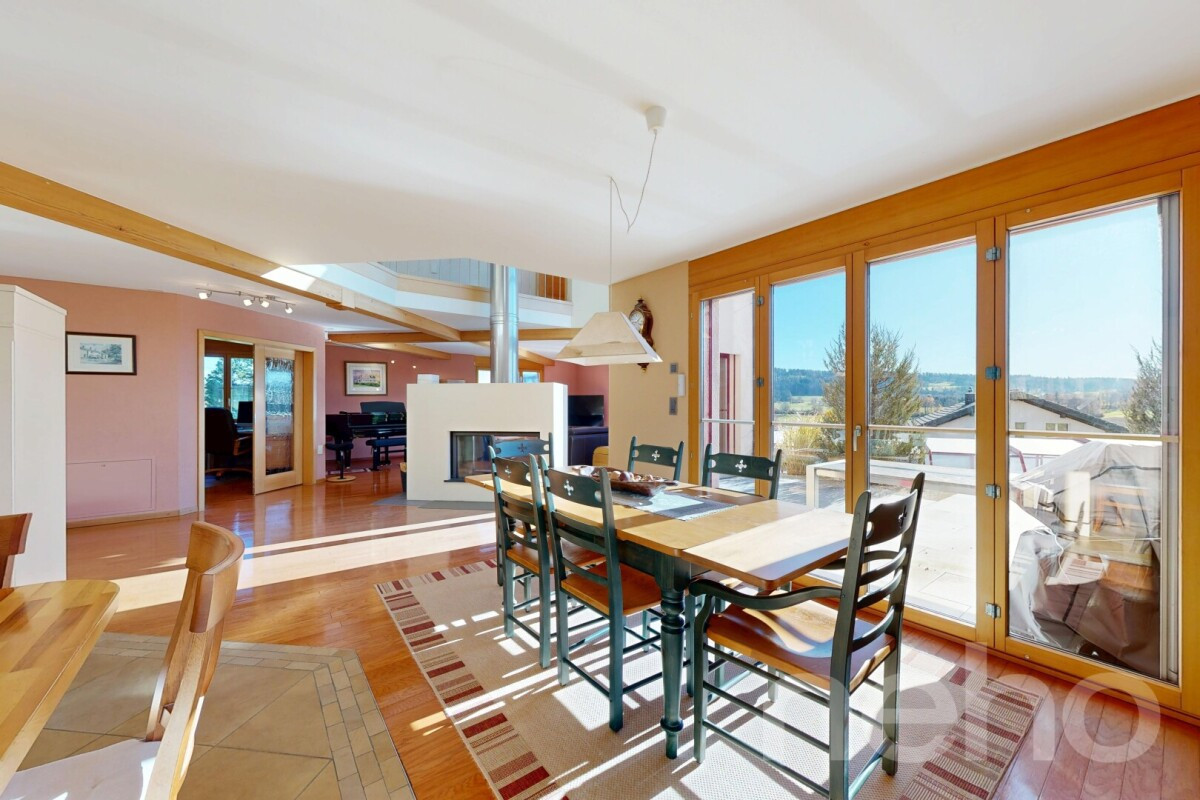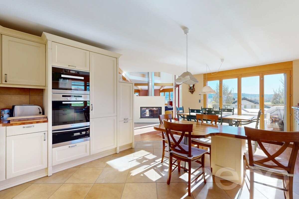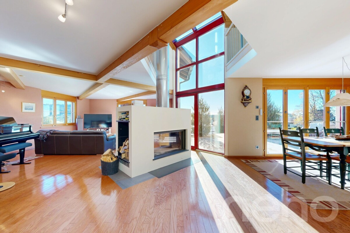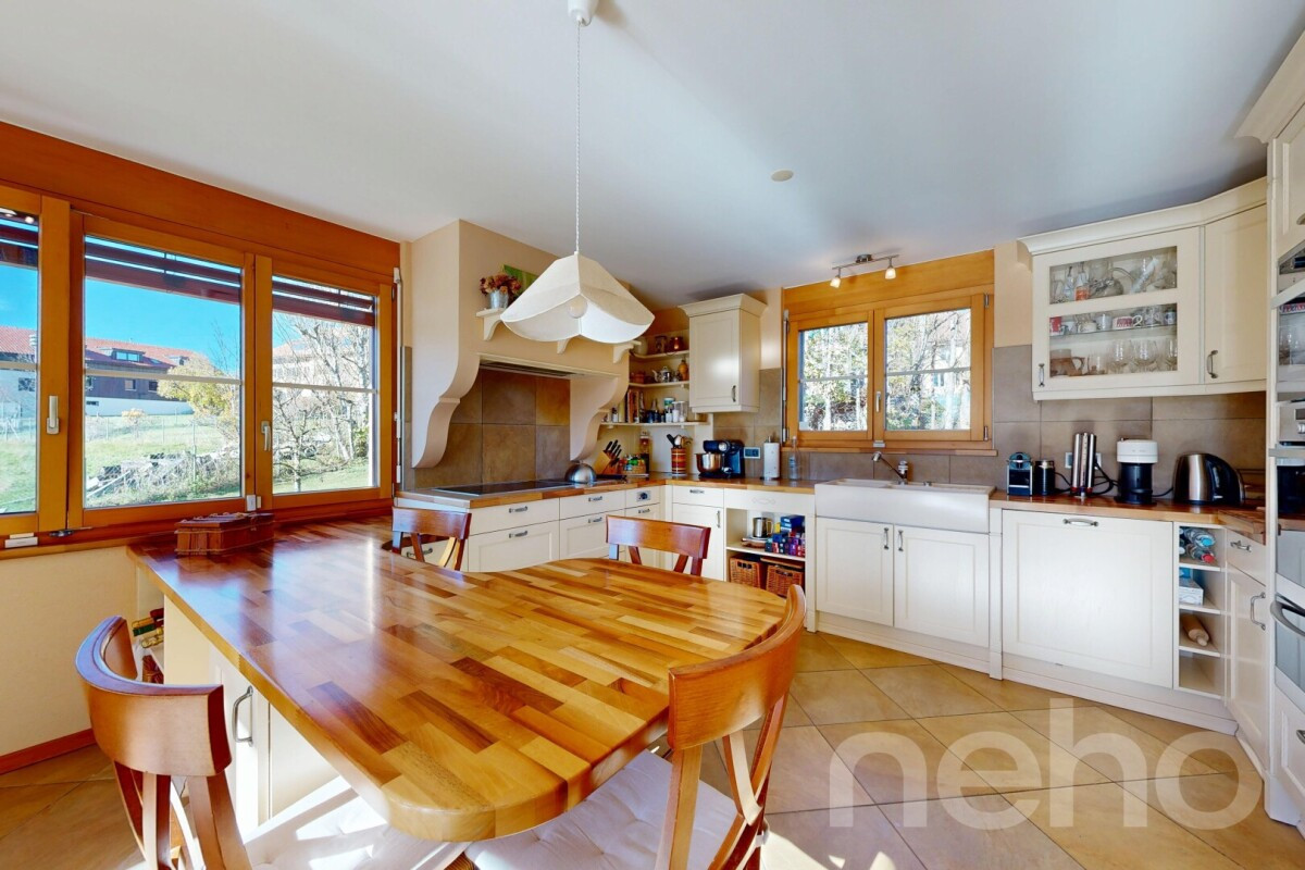 Découvrez cette superbe maison familiale alliant confort moderne, élégance et volumes généreux, située dans un cadre paisible avec une vue imprenable sur les montagnes. Baignée de lumière grâce à son exposition plein sud, elle offre un espace de vie idéal pour une famille à la recherche de bien-être et de qualité de vie.Avec 235 m² habitables répartis sur trois niveaux, cette propriété comprend 6.5 pièces, dont 4 chambres spacieuses, parfaitement adaptées à une vie familiale. Les matériaux haut de gamme utilisés témoignent d'un soin particulier apporté à la construction et à la durabilité.À l'extérieur, vous profiterez d'un grand jardin paysager, d'une grande piscine extérieure couverte rétractable, et d'un terrain de 1658 m² offrant intimité et tranquillité ? un environnement privilégié pour se ressourcer.La maison est en excellent état d'entretien, ne nécessitant aucun travaux. Deux salles de bains ainsi qu'un toilette invité complètent ce bien rare sur le marché.? Un bien unique à découvrir sans attendre.
