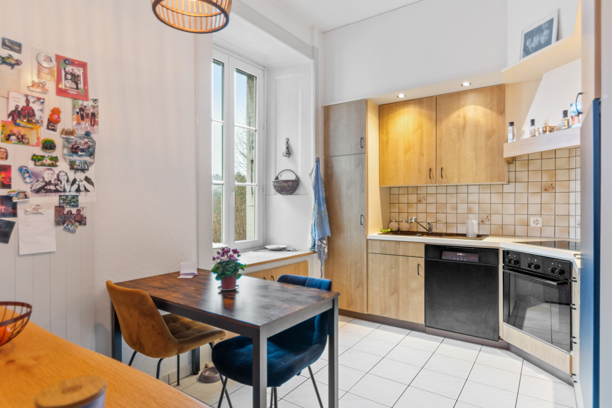 La maison se compose de trois appartements soignés, offrant des surfaces généreuses et lumineuses :