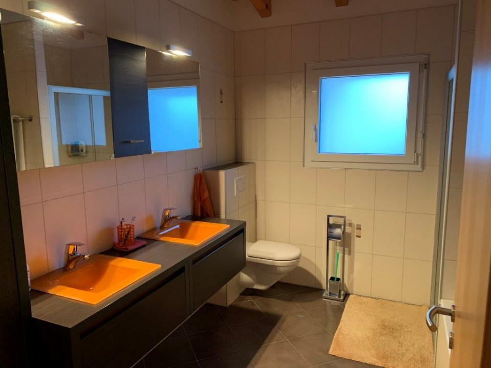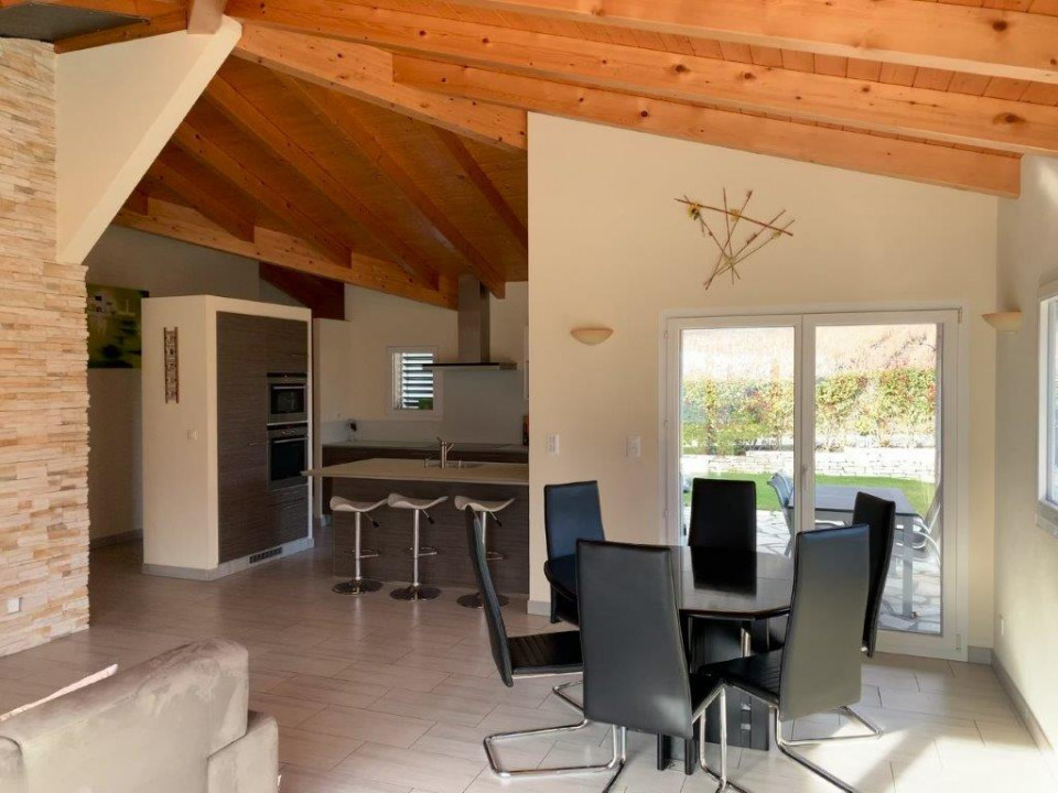 La maison dispose d’une importante hauteur sous-plafond avec une charpente apparente. Elle est dotée d’un aspirateur central, de stores électriques, d’une chute de linge débouchant au sous-sol directement à la buanderie.