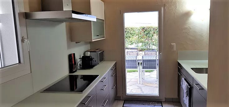 Cuisine ouverte de 10 m2 donnant sur une terrasse de 24 m2