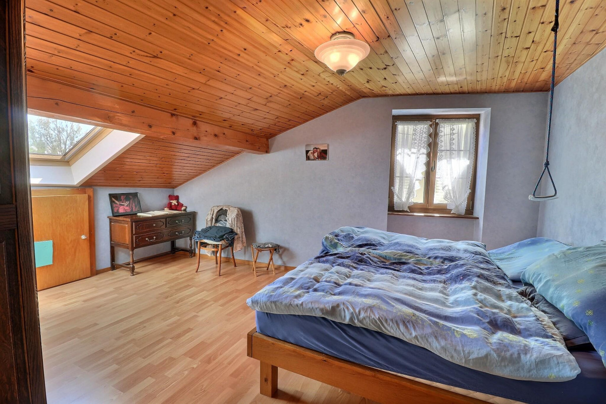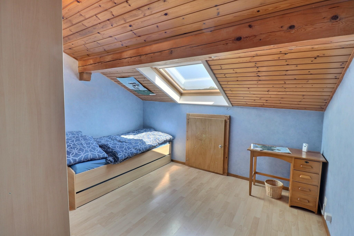 Au deuxième niveau, l'espace nuit se compose de trois chambres, idéales pour accueillir famille et invités, ainsi que d'une salle de bains équipée d'une baignoire. Un espace de rangement supplémentaire optimise encore l'organisation.