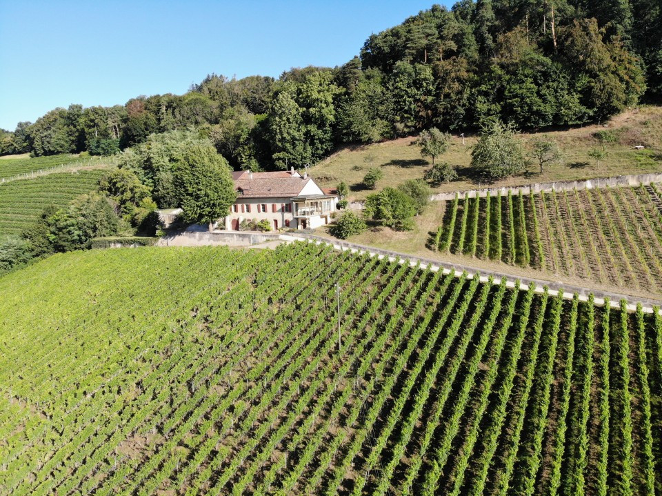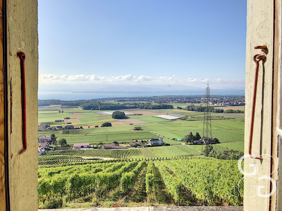 La vue sur les vignes, le lac les Alpes et le Mont-Blanc est grandiose, de toutes les pièces ouvrant sur la façade sud.