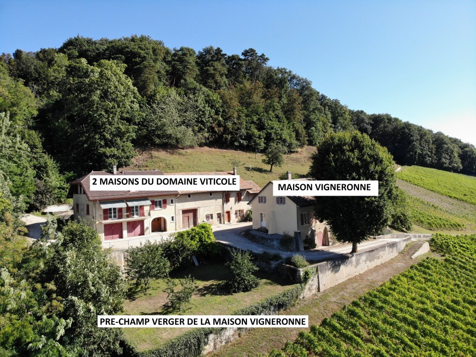 Cette ancienne maison vigneronne construite en 1849, à rénover entièrement, comprenant un jardin et un verger, est située sur la colline au dessus du village de Luins.