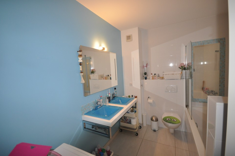 - Une salle de bain avec double lavabos et WC (raccord machine à laver et séchoir)