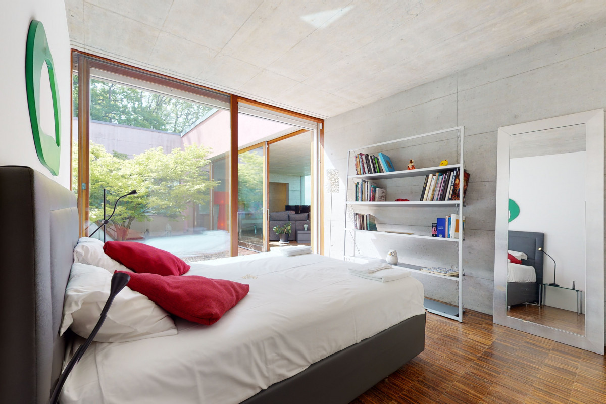 With its remarkable architecture and breathtaking view of the lake, this villa located on a dead-end road offers a harmonious and fluid distribution in a spacious volume bathed in light. 4 bedrooms and 3 bathrooms on 3 floors make up this property, in addition to a large garden and a central patio from which the view of the lake is admirable.
