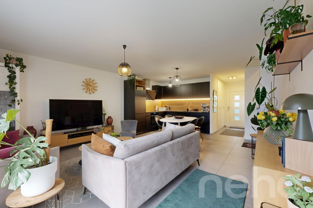 Découvrez cette maison mitoyenne construite en 2023, alliant confort et tranquillité, nichée dans un cadre paisible avec une vue dégagée sur les montagnes.Bénéficiant d'une exposition Sud-Ouest, elle offre une belle luminosité tout au long de la journée. Répartie sur deux niveaux, la propriété propose un aménagement fonctionnel et harmonieux avec ses 4,5 pièces.Les matériaux de qualité utilisés témoignent d'un soin particulier apporté aux détails, tandis que son excellent état général garantit une habitation prête à accueillir ses futurs propriétaires. Cette maison est idéale pour les familles à la recherche d'espace et de sérénité.Elle dispose de trois chambres spacieuses et de deux salles de bains équipées de fenêtres, offrant un confort optimal au quotidien.Le jardin, entièrement clôturé par des palissades, constitue un espace extérieur agréable.Située dans un environnement calme, elle bénéficie d'un cadre de vie privilégié, à l'écart des nuisances urbaines tout en restant à proximité immédiate des commodités.Sont inclus dans le prix un garage box ainsi que deux places de parc extérieures.Ne manquez pas cette opportunité unique. Contactez-nous dès aujourd'hui pour organiser une visite et découvrir par vous-même le charme de cette maison exceptionnelle.