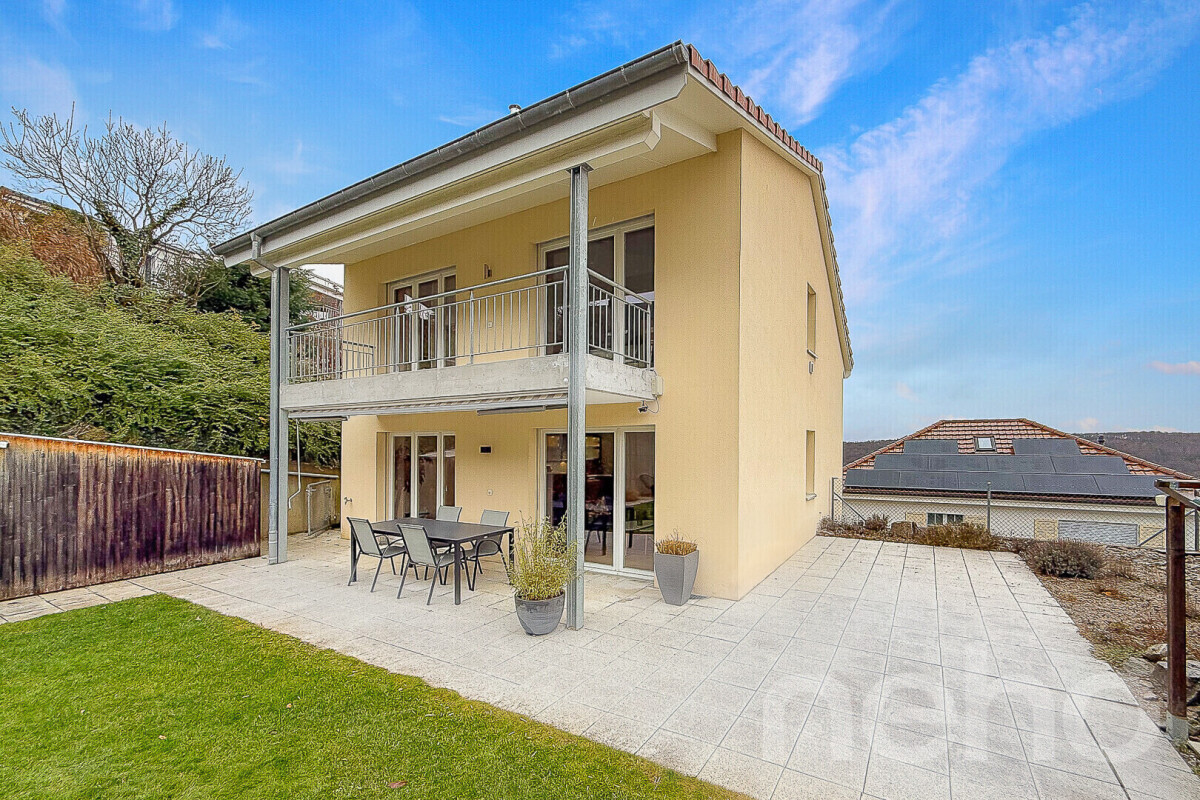 Vom Garten, vom Balkon und selbst aus dem Schlafzimmer geniessen Sie eine beeindruckende, weitläufige Aussicht bis nach Basel ? ein einzigartiges Panorama, das zu den absoluten Highlights dieser Liegenschaft zählt.Im Sockelgeschoss stehen Ihnen zusätzlich Technikräume, ein praktischer Geräteschopf sowie ein Veloabstellbereich zur Verfügung. Die moderne Wärmepumpe mit Bodenheizung sorgt zudem für energieeffizientes, zeitgemässes Wohnen.Dieses Haus verbindet moderne Wohnqualität, eine ruhige und naturnahe Lage sowie ein harmonisches Wohngefühl - ideal für Familien, Paare oder alle, die Wert auf Lebensqualität legen.