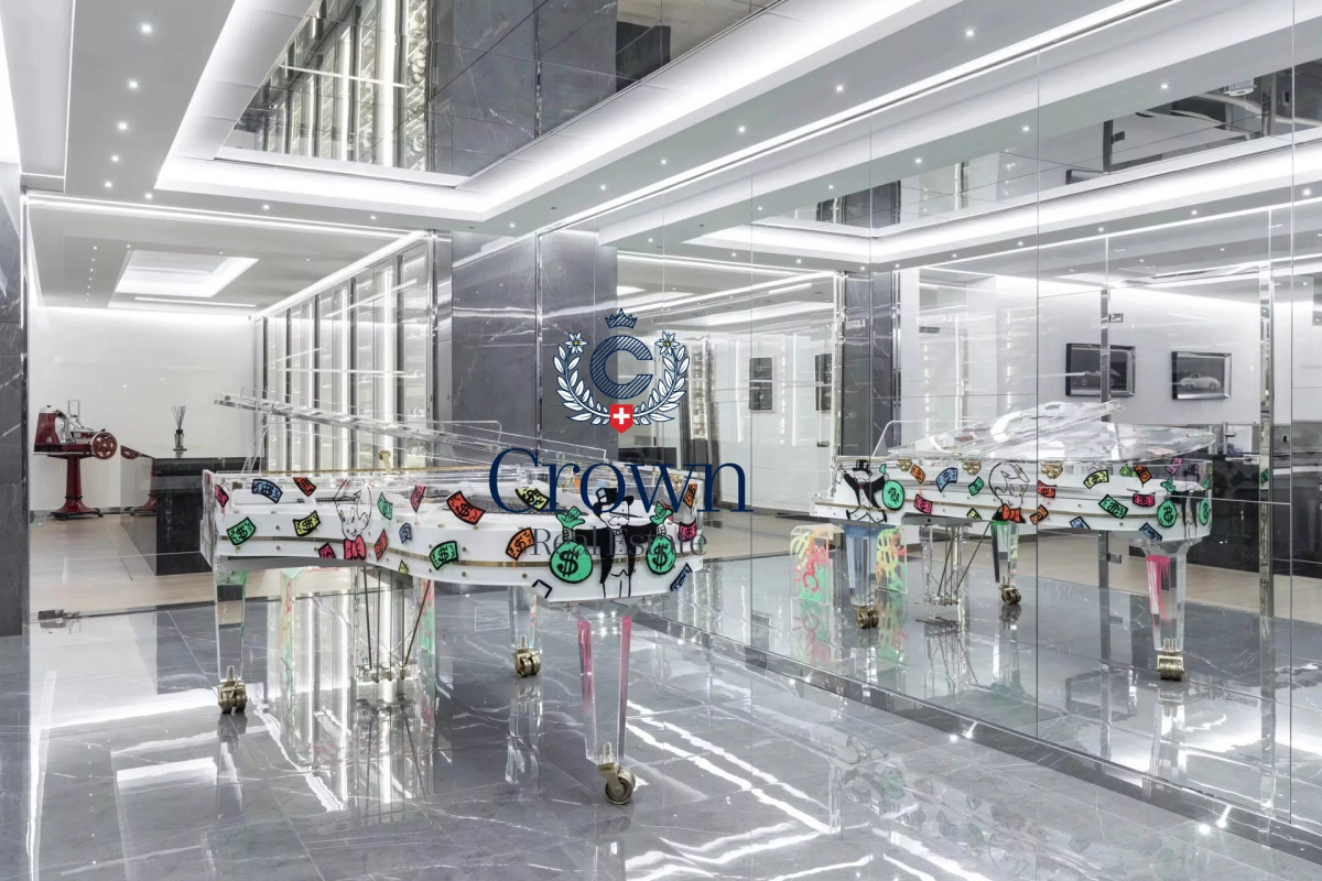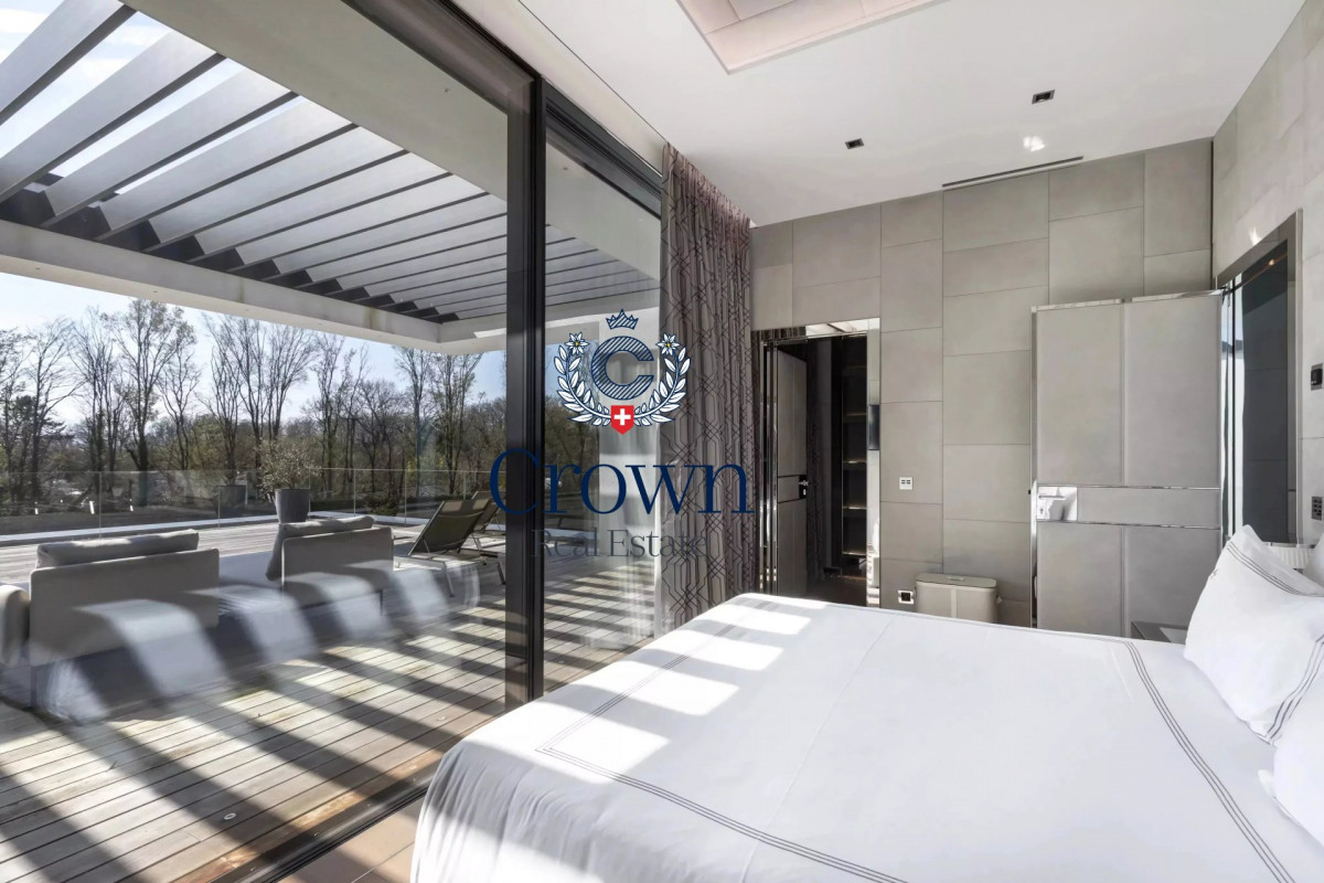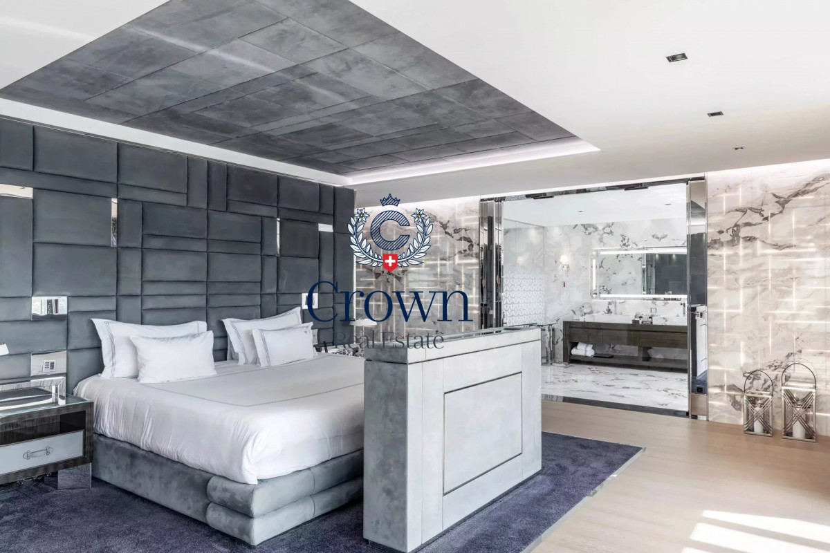 Built in 2020, the property boasts more than 2,000 m² of living space and rare features. It includes nine bedrooms, ten bathrooms, vast reception areas with living and dining rooms, two fully equipped kitchens, a fitness room, a spa area, a home cinema, several lounge areas and an underground garage for up to ten vehicles. Every detail has been carefully considered: noble materials, impeccable finishes and exceptional aesthetic choices, such as the Italian marble in the bathrooms or the leather covering the walls of the bedrooms and living areas. Bathed in light and generously dimensioned, the villa offers an immediate sensation of comfort and intimacy, evoking a veritable cocoon of well-being.