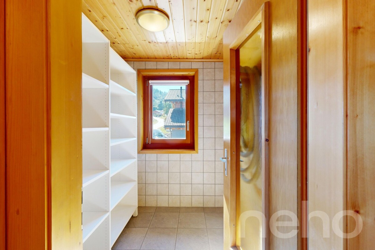 The outdoor area is a real highlight: on a 1,000 m² plot, a 78 m² terrace and an 8 m² balcony allow you to fully enjoy the surrounding nature. In excellent condition, this chalet also includes an independent garage for 2 cars, 4 outdoor parking spaces, a cellar, and an 8 m² laundry room. With a volume of 750 m³ (SIA 116), it perfectly combines Alpine charm with modern comfort in a bright and welcoming atmosphere.