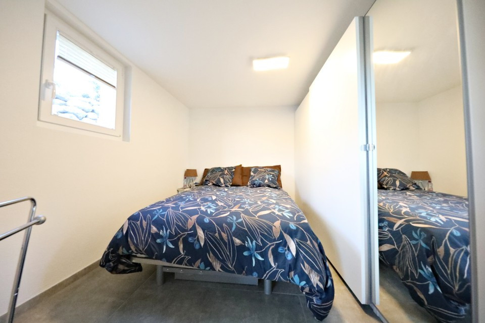 - au Rez-de-chaussée, d'un véritable studio avec une entrée indépendante donnant sur belle pièce de vie / salle à manger avec possibilité d'installer une cuisine ouverte, d'une chambre, d'une salle de bain / wc, d'une cave, d'une buanderie avec machines et de 2 garages fermés d'environ 21 m2 chacun.