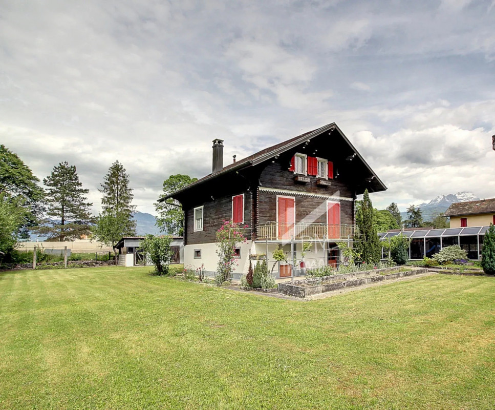 Chalet des années 30 d'une surface brute totale de 156 m2 (3 x 52 m2), située dans un quartier recherché et résidentiel de Monthey, à proximité de la Vièze.