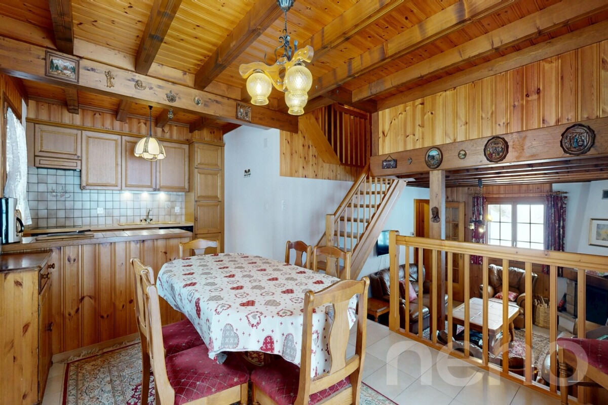 Découvrez ce chalet idéal pour les familles, bénéficiant d'une exposition agréable et d'une vue imprenable sur les montagnes. Situé dans un quartier paisible, cette propriété de 5,5 pièces offre un cadre de vie serein tout en étant à proximité de toutes les commodités essentielles.Avec ses 103 m² de surface habitable répartis sur deux étages par demi-niveaux, elle comprend trois chambres spacieuses, une plus petite avec lits superposés et deux salles d'eau dont une avec un sauna, garantissant confort et espace pour chacun. La maison est en excellent état d'entretien général, témoignant du soin apporté par ses propriétaires.Implantée sur un terrain généreux de 683 m², cette demeure dispose également d'un garage indépendant, ajoutant à la praticité du quotidien. Sa vaste superficie utile de 130 m² permet d'envisager divers aménagements selon vos besoins.N'attendez plus pour découvrir le charme et le potentiel de cette propriété exceptionnelle. Contactez-nous dès aujourd'hui pour organiser une visite et laisser-vous séduire par son ambiance unique.
