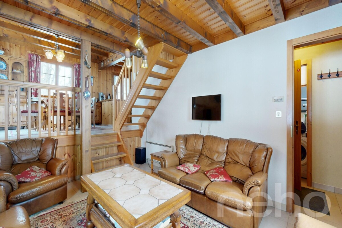 Discover this family-friendly chalet, which enjoys a pleasant aspect and stunning views of the mountains. Situated in a peaceful neighbourhood, this 5.5-room property offers a tranquil living environment whilst being close to all essential amenities.With 103 m² of living space spread over two split-level floors, it comprises three spacious bedrooms ? one smaller room with bunk beds ? and two shower rooms, one of which features a sauna, ensuring comfort and space for everyone. The house is in excellent overall condition, reflecting the care taken by its owners.Set on a generous plot of 683 m², this property also features a separate garage, adding to its everyday practicality. Its generous floor area of 130 m² allows for a variety of layout options to suit your needs.Don't wait any longer to discover the charm and potential of this exceptional property. Contact us today to arrange a viewing and let yourself be charmed by its unique atmosphere.