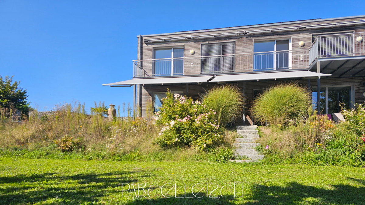 Am Ende einer ruhigen Sackgasse, in einem gepflegten Wohnquartier an einer nicht bebaubaren Zone, besticht dieses moderne Haus durch Grosszügigkeit, Helligkeit und ein harmonisches Raumkonzept.