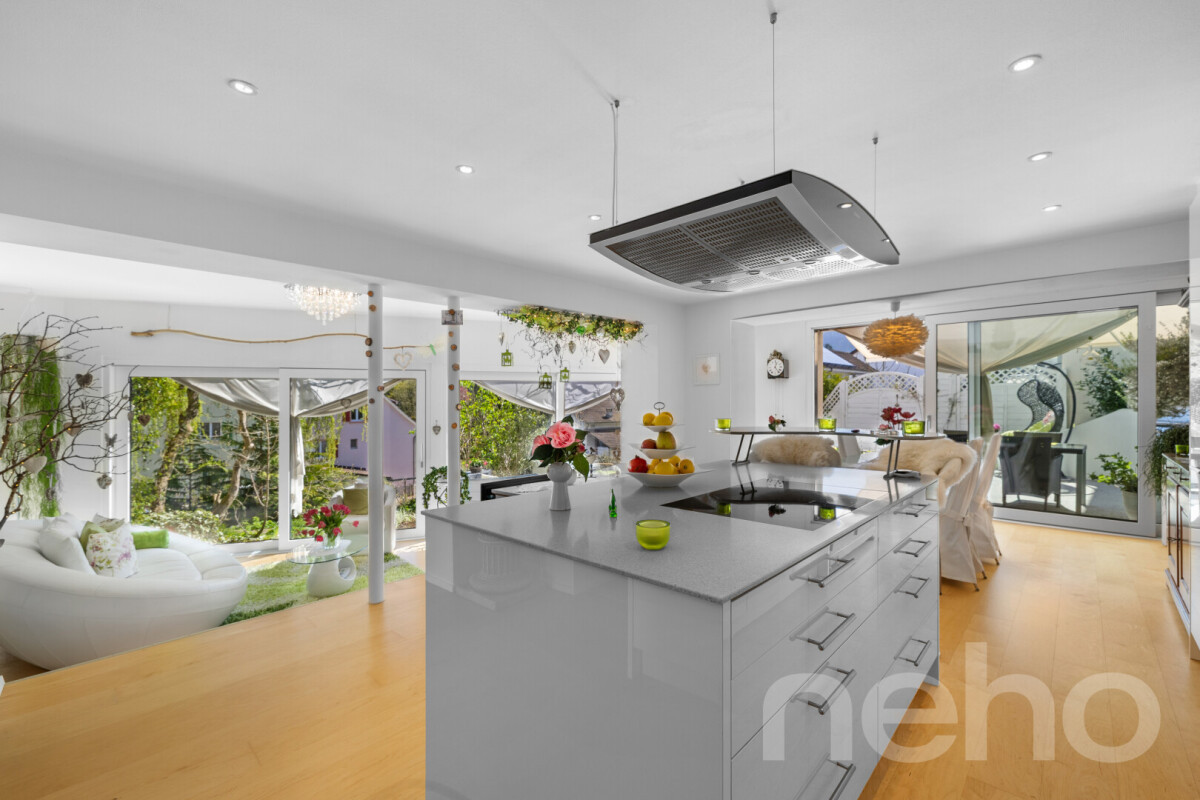 Wohntraum mit unverbaubarer Aussicht ins GrüneDieses freistehende Einfamilienhaus überzeugt durch seine ruhige, sonnige Lage am Rande der Bauzone sowie durch den herrlichen, unverbaubaren Ausblick ins Grüne. Der grosszügige Wohn- und Essbereich mit Galerie bildet das Herzstück des Hauses und wird durch eine hochwertige, offene Küche mit praktischem Réduit ergänzt. Der gepflegte Aussenbereich...