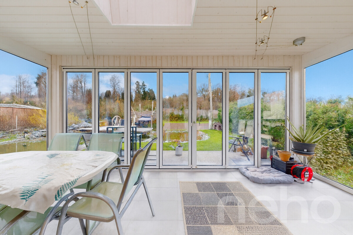 Einfamilienhaus mit grossem Garten, Wintergarten und Teich