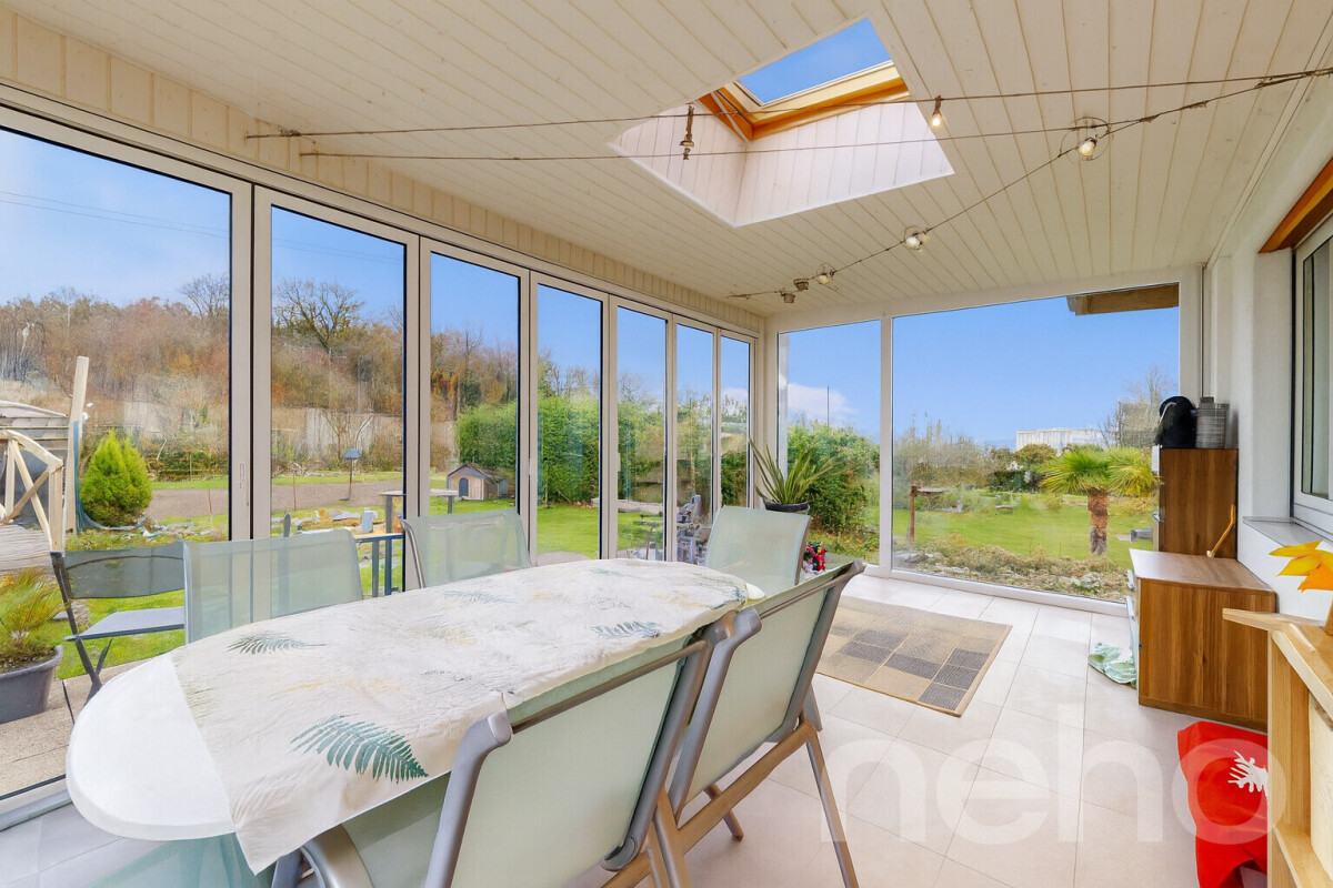 Der beheizte Wintergarten erweitert den Wohnbereich ideal und sorgt dank grosszügiger Verglasung ganzjährig für ein helles, freundliches Ambiente, perfekt für gemeinsame Mahlzeiten, als Lounge oder als kreativer Hobbyraum.