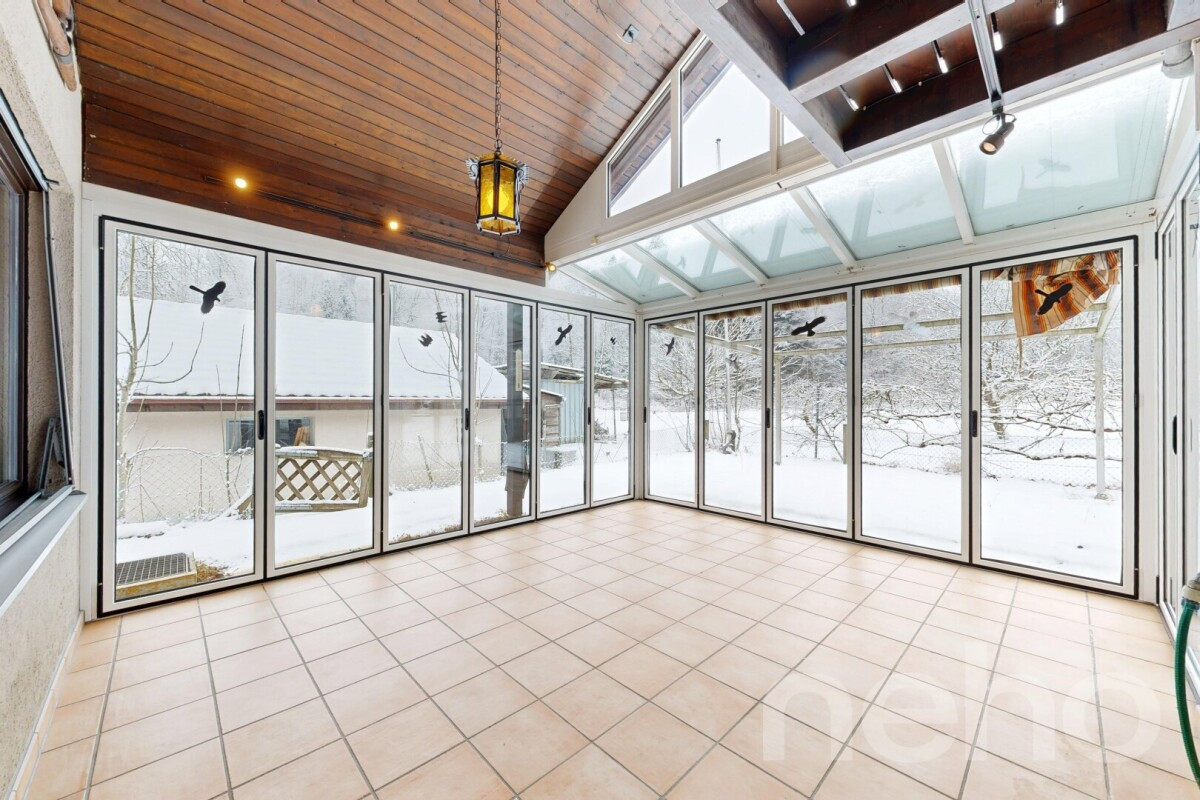 Dieses 4.5-Zimmer-Doppeleinfamilienhaus bietet naturnahes Wohnen auf einem grosszügigen Grundstück von 836m² mit freier Sicht ins Grüne. Die Liegenschaft überzeugt durch ein helles Wohnambiente, eine durchdachte Raumstruktur und vielfältige Nutzungsmöglichkeiten.Der geräumige Eingangsbereich mit Platz für eine Garderobe schafft einen angenehmen Empfang. Der lichtdurchflutete Wohnbereich bildet das Zentrum des Hauses und wird durch den beheizten Wintergarten ergänzt, der zusätzlichen Wohnraum über das ganze Jahr bietet. Die halboffene Küche mit viel Stauraum fügt sich harmonisch ein und eignet sich sowohl für den Alltag als auch für gesellige Momente.Drei Schlafzimmer, eine Nasszelle mit Bad und Dusche sowie ein separates Gäste WC sorgen für eine komfortable Aufteilung. Die Galerie eröffnet weitere Nutzungsmöglichkeiten, etwa als Arbeitsbereich oder Rückzugsort. Ein separater Wohlfühlbereich mit Sauna und Dusche rundet das Angebot ideal ab.Der bestehende Renovationsbedarf eröffnet die Chance, die Liegenschaft gezielt zu modernisieren und nach den eigenen Vorstellungen zu gestalten.Der Aussenbereich bietet viel Platz für Erholung und individuelle Gestaltung. Eine Doppelgarage steht ebenfalls zur Verfügung. Öffentliche Verkehrsmittel, Schulen und Einkaufsmöglichkeiten befinden sich in Gehdistanz.Zögern Sie nicht und kontaktieren Sie uns noch heute für einen unverbindlichen Besichtigungstermin!