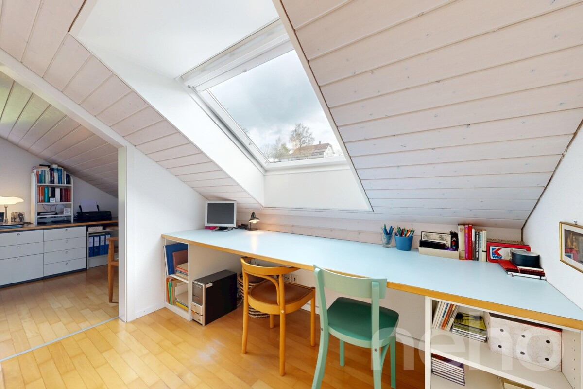 Das Dachgeschoss erweitert das Raumangebot um ein weiteres Schlafzimmer sowie ein separates Büro und eignet sich ideal für Homeoffice oder als Rückzugsbereich.