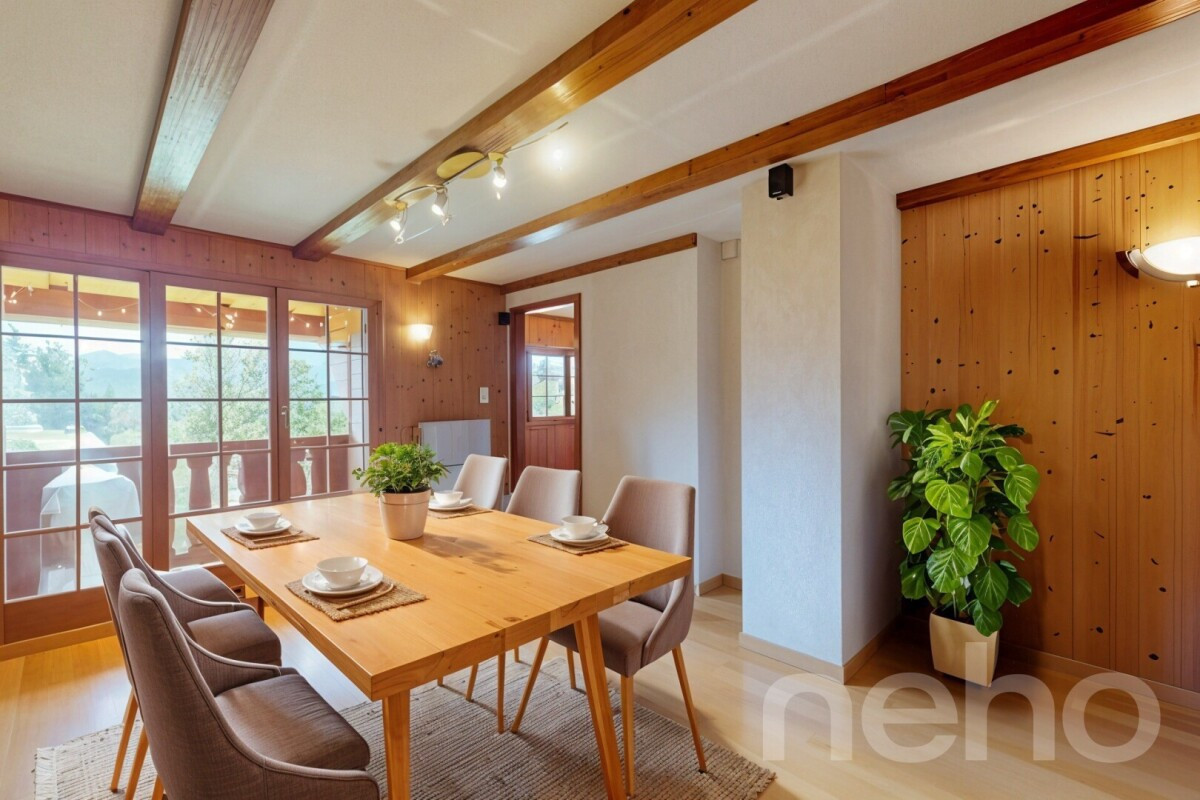 Le rez inférieur bénéficie d'un accès direct à la terrasse et au jardin, parfaits pour profiter des beaux jours. On y trouve également un local/atelier de bricolage ainsi qu'une cave pratique. Le chalet, sain et entretenu avec soin, garantit un cadre de vie chaleureux et confortable.