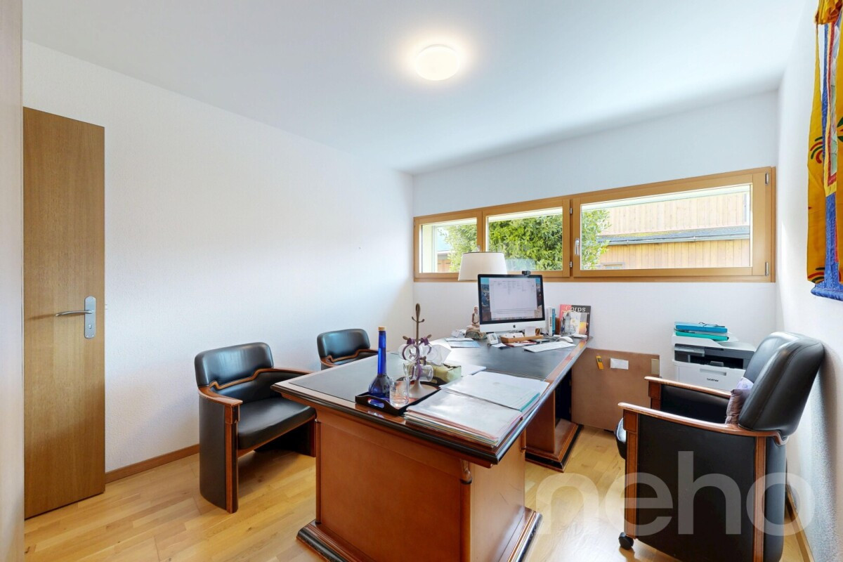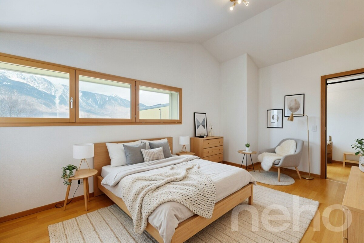 Nichée dans un environnement privilégié, cette magnifique villa contemporaine sur deux niveaux séduit dès les premiers instants par son élégance et son état irréprochable, proche du neuf. Idéalement située, elle bénéficie d'une vue dégagée spectaculaire sur les Dents du Midi, sans aucun vis-à-vis, offrant un cadre de vie à la fois paisible et inspirant.Baignée de lumière grâce à ses larges baies vitrées, la propriété dévoile des espaces généreux et harmonieusement agencés. Les matériaux choisis avec soin soulignent le standing de l'ensemble, tandis que les volumes spacieux garantissent un confort de vie optimal au quotidien.Les extérieurs, parfaitement entretenus, proposent un véritable art de vivre en plein air : jardin arboré, potager, arbres fruitiers et divers espaces annexes viennent compléter ce tableau enchanteur.Atout rare, la possibilité d'acquérir en sus un vaste entrepôt attenant de plus de 250 m², équipé d'un WC et d'un bureau, ouvre la porte à de nombreuses opportunités : rendement locatif, activité professionnelle ou espace de stockage privé.Une propriété complète, alliant modernité, sérénité et potentiel, idéale pour une clientèle en quête d'un bien unique.