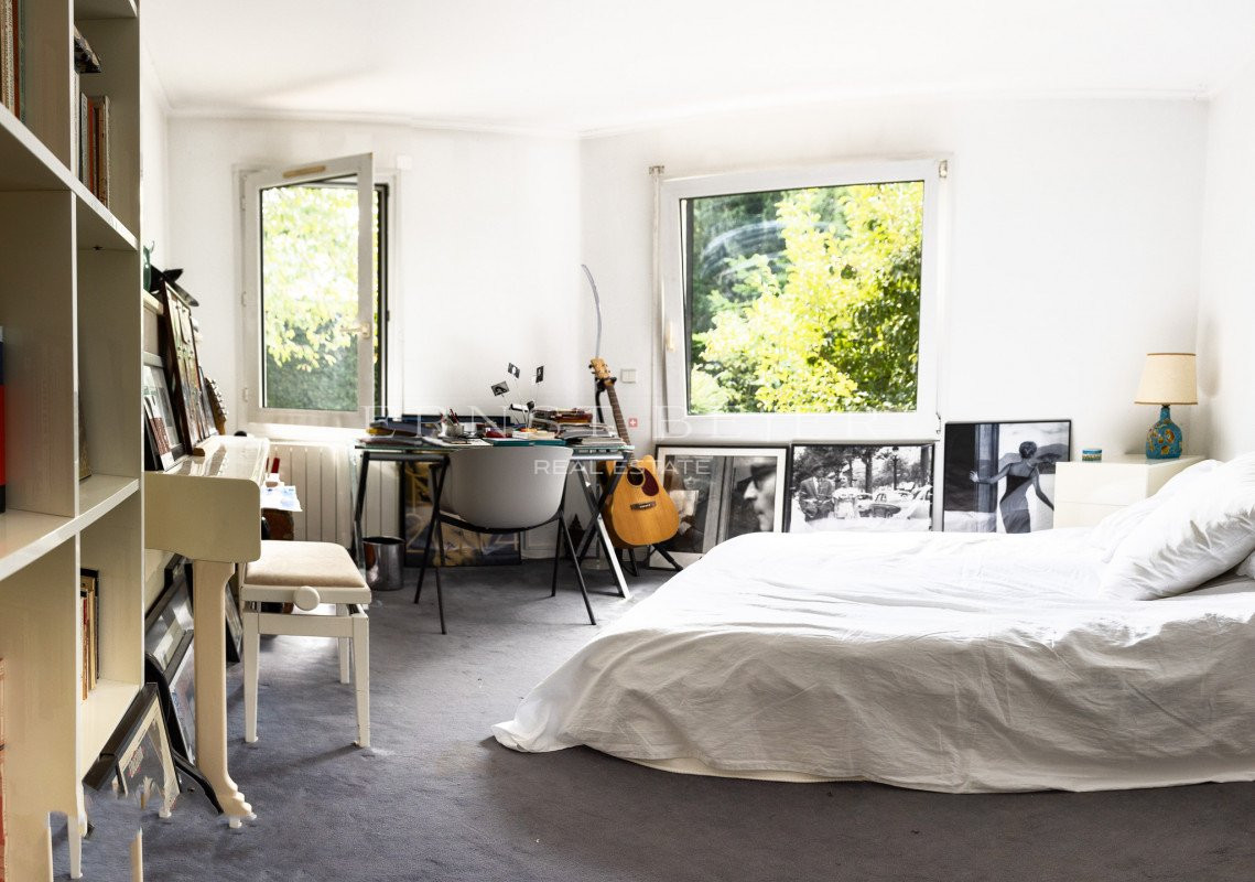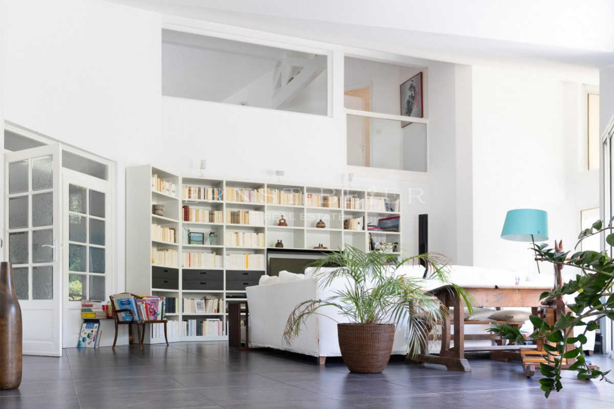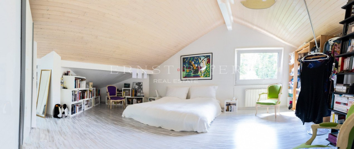 À l’étage, se trouvent une grande chambre supplémentaire avec salle de bain et un bureau baigné de lumière, idéal pour le télétravail.