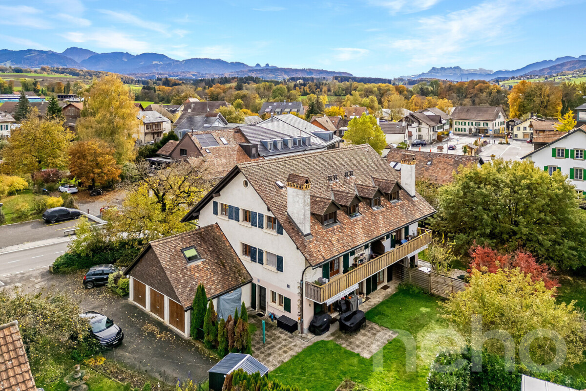• Deux appartements de 4.5 pièces avec terrasse et jardin privatif attenant. À noter que l'un des appartements dispose d'une cheminée avec insert.