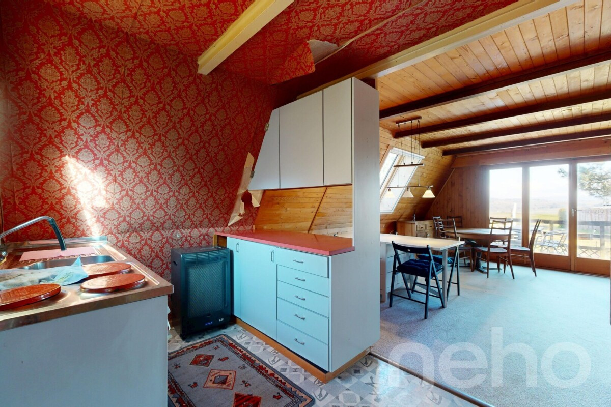 À Pailly, dans un environnement paisible et verdoyant, ce chalet de vacances constitue une belle opportunité pour les amateurs de nature et de tranquillité.Il est important de préciser d'emblée que ce bien est destiné à un usage de résidence secondaire et ne convient pas pour une résidence principale. La parcelle est par ailleurs en droit de superficie, renouvelable en 2050.Le chalet est implanté sur une agréable parcelle d'environ 300 m², arborée et clôturée, offrant un cadre intime et un calme absolu. Depuis la terrasse, vous profitez d'une vue dégagée sur la campagne environnante et sur les Alpes par temps clair. L'espace extérieur comprend une terrasse agréable, idéale pour profiter des beaux jours dans un cadre naturel et reposant.À l'intérieur, le chalet se compose au rez-de-chaussée d'un séjour, d'une cuisine et d'une salle de bains. Afin d'améliorer la luminosité de la pièce de vie, un Velux triple vitrage a été installé en 2021.À l'étage, le coin nuit dispose de deux petites chambres sous les combles.L'ensemble du bien nécessite des travaux de rénovation, ce qui permettra au futur propriétaire de repenser et d'aménager les espaces selon ses envies.Ce chalet séduira les personnes à la recherche d'un petit pied-à-terre au vert, d'un refuge de week-end ou d'un projet de rénovation dans un cadre calme et naturel au c?ur du Gros-de-Vaud.Une opportunité rare pour les amateurs de nature souhaitant créer leur propre chalet de vacances.