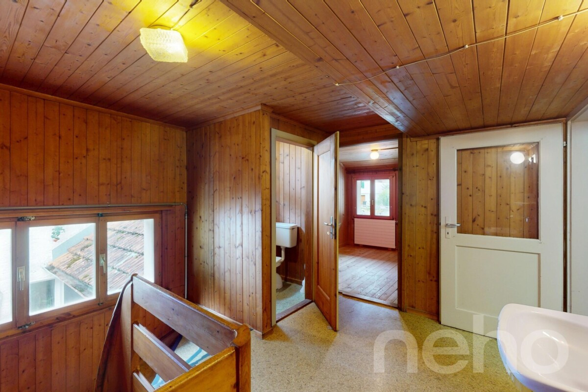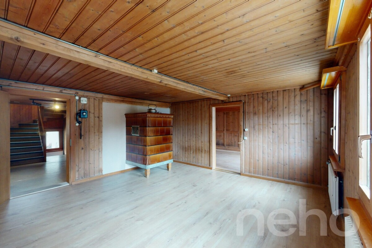 Dieses charmante Haus mit 8 Zimmern bietet viel Platz für Familien oder als Ferienhaus. Das Haus überzeugt mit einer gelungenen Kombination aus Holzcharme und modernisierten Bereichen wie Küche und Bad. Die Räume sind hell und freundlich, und wer mag, kann den oberen Zimmern mit etwas Renovation einen persönlichen Charakter verleihen.