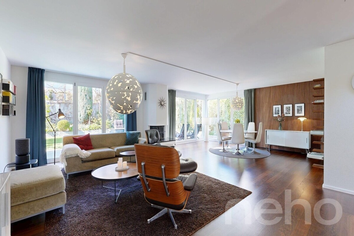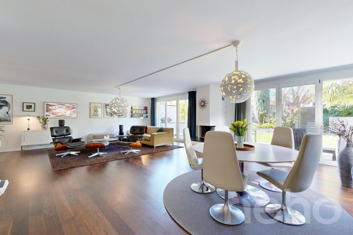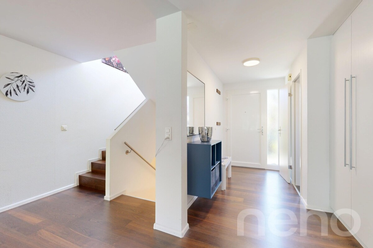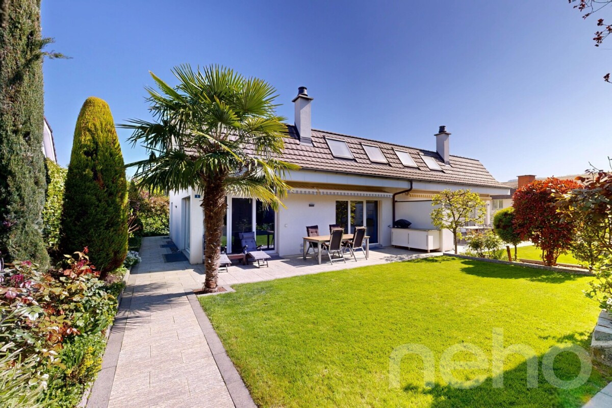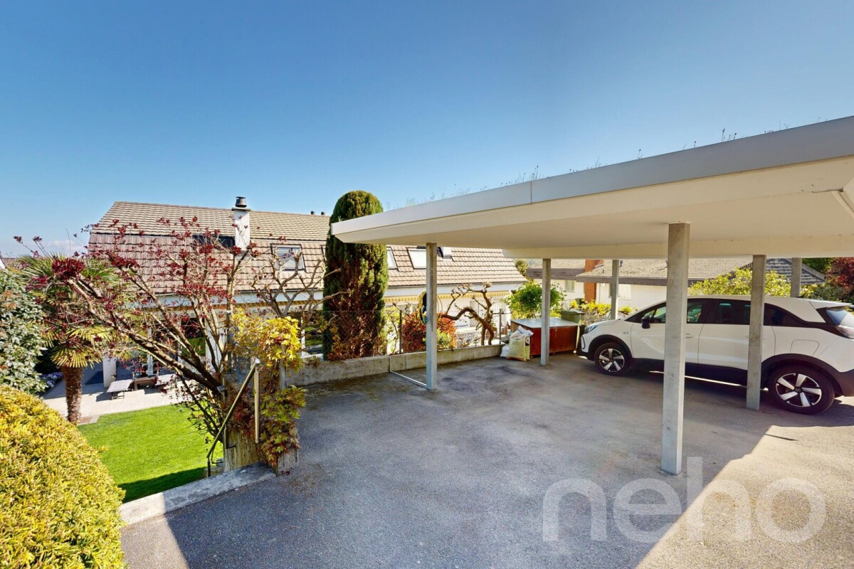 In einer ruhigen und familienfreundlichen Nachbarschaft erwartet Sie dieses charmante Zuhause, das durch seine gelungene Kombination aus Wohnkomfort, Grosszügigkeit und idyllischer Lage überzeugt. Der gepflegte Garten sowie die weitreichende Aussicht schaffen eine besondere Wohnatmosphäre, die Erholung und Lebensqualität vereint.Bereits beim Betreten des Hauses empfängt Sie ein einladendes Wohnambiente. Das grosszügige Wohnzimmer mit Cheminée bildet das Herzstück des Erdgeschosses und lädt zu gemütlichen Stunden ein. Die Küche ist hochwertig ausgestattet und verfügt über Geräte von Siemens, darunter ein Induktionskochfeld, Backofen sowie ein grosszügiger Kühl- und Gefrierschrank. Ein Gäste-WC ergänzt das Raumangebot auf dieser Etage ideal.Der liebevoll angelegte Garten bietet viel Platz für Erholung, Spiel und gesellige Stunden im Freien. Im Obergeschoss erwarten Sie drei helle Zimmer sowie ein grosszügiges Familienbadezimmer mit Badewanne und Dusche. Die hohen Decken verleihen den Räumen eine besondere Grosszügigkeit und ein angenehmes Raumgefühl. Dank der zweifach verglasten Fenster mit Insektenschutz sind alle Zimmer lichtdurchflutet und bieten gleichzeitig hohen Wohnkomfort.Ein besonderes Plus bietet das Untergeschoss: Neben grosszügigen Kellerflächen und praktischem Stauraum verfügt dieses über ein beheiztes Gästezimmer mit eigenem Badezimmer. Ein Waschraum mit direktem Zugang zum Luftschutzraum befindet sich ebenfalls auf dieser Etage. Abgerundet wird dieses attraktive Angebot durch zwei Carports mit integrierter Ladestation für Elektrofahrzeuge. Ein Zuhause, das durch seine ruhige Lage, die durchdachte Raumaufteilung und den hohen Wohnkomfort überzeugt. Für alle, die ein harmonisches Wohnumfeld suchen.