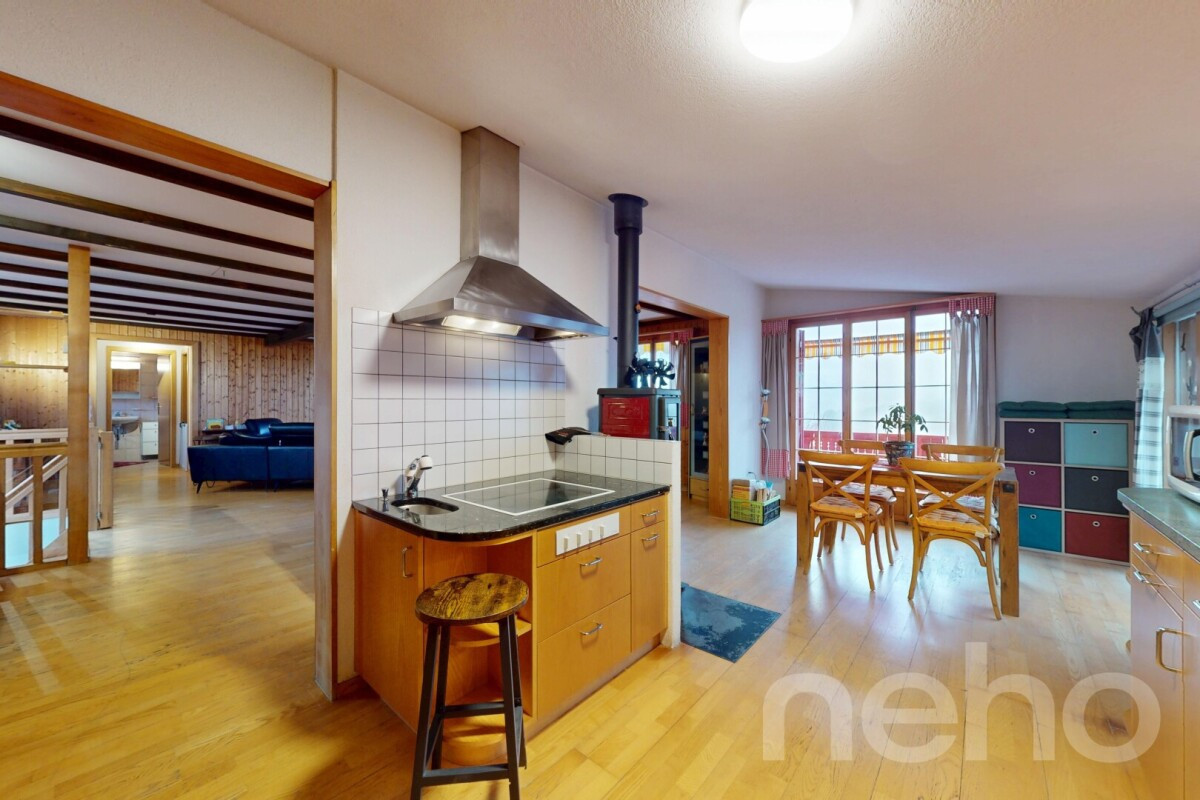 Das Haus besticht durch eine kluge Raumaufteilung und helle, geräumige Zimmer, die viel Platz für Entfaltung bieten. Das gemütliche Wohnzimmer mit Schwedenofen und einem stilvollen Cheminée schafft eine warme Atmosphäre, während der grossflächige Balkon den Blick auf die Natur freigibt. Ein heller Windfang und zwei Nasszellen ergänzen das einladende Ambiente. Die separate Waschküche mit Waschturm bietet zusätzlichen Komfort.