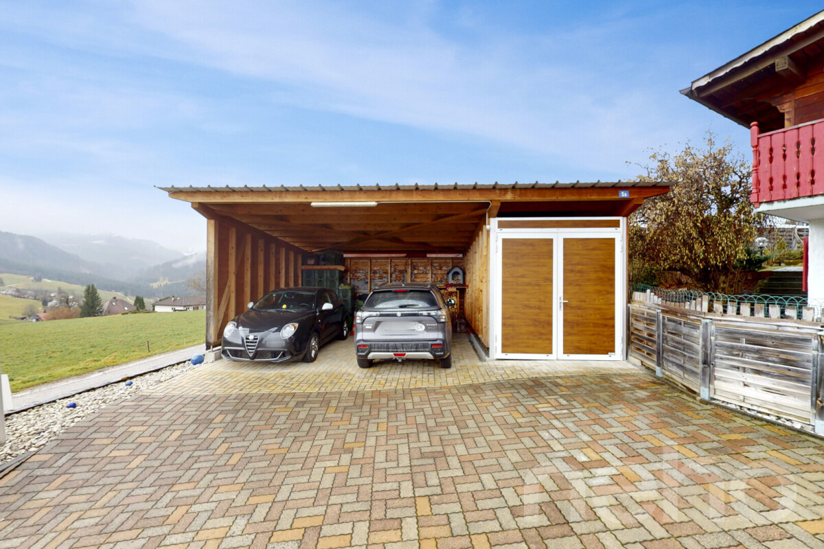 Ein Carport mit Platz für zwei Autos und einem verschliessbaren Bereich rundet das Angebot ab. Perfekt für alle, die Ruhe, Natur und den gemütlichen Charme eines Chalets lieben - ein Ort, an dem man sich sofort wohlfühlt.