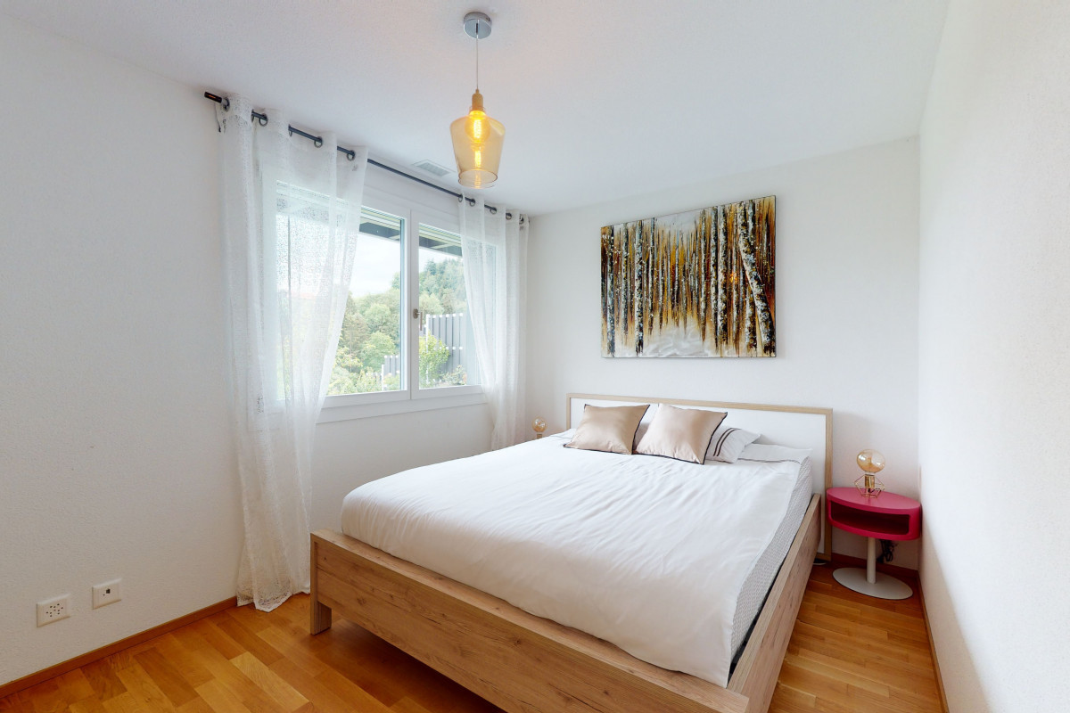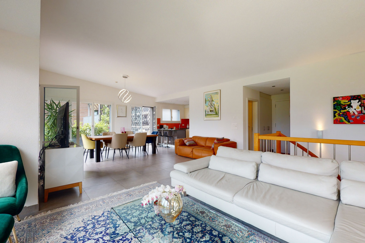 Ideally located near schools and amenities, this beautiful Minergie certified villa enjoys breathtaking views of the lake and mountains. With a recent construction and composed with high quality materials, the villa has an independent room with the possibility of connecting it to the house, thus enlarging the living area. The exterior offers a beautiful garden with a vegetable patch and fruit trees. The opposite plot is in an agricultural area. Two covered parking spaces complete this property.