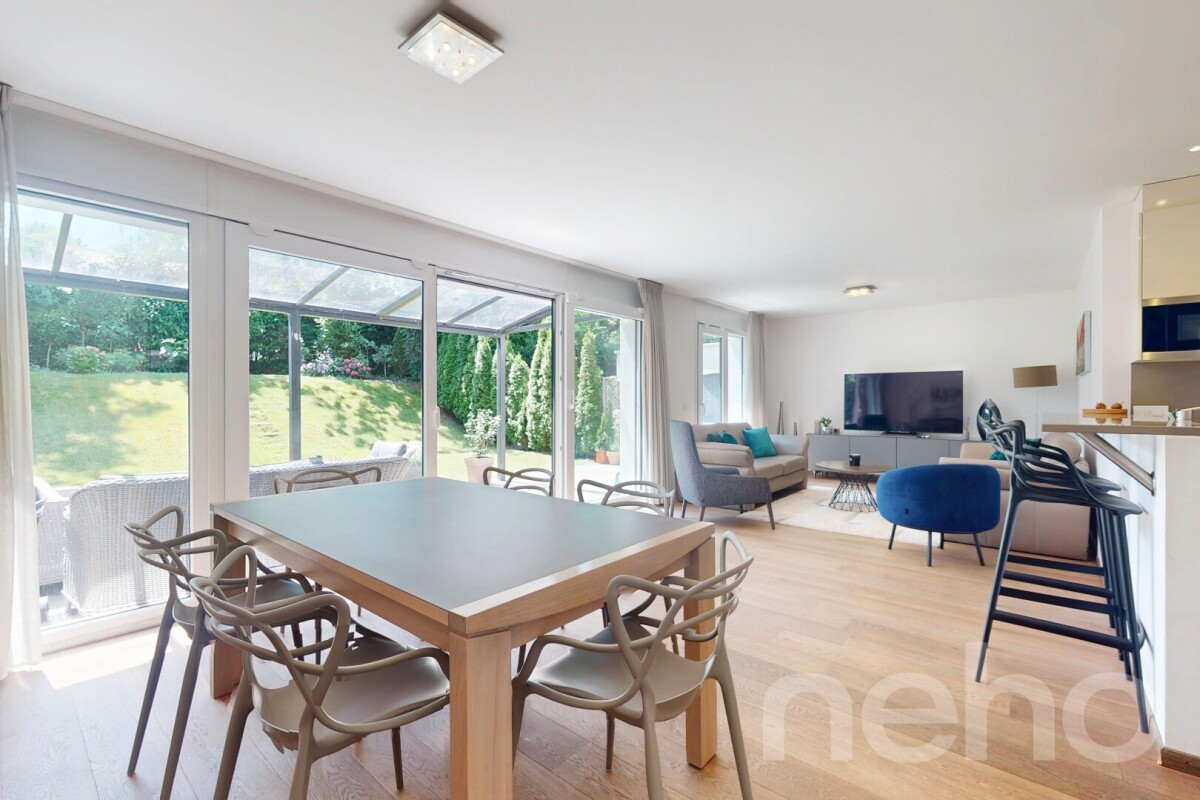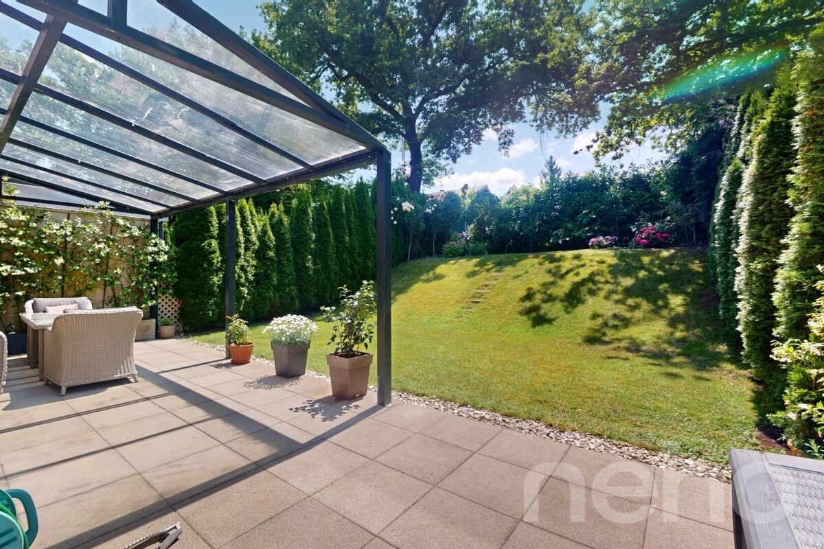 Découvrez cette superbe maison mitoyenne, idéalement située dans un quartier résidentiel calme, à proximité immédiate de toutes les commodités, des organisations internationales et à seulement quelques minutes de l'aéroport.Son emplacement offre un accès privilégié aux transports publics, aux écoles, aux commerces et aux principaux axes autoroutiers, tout en garantissant un cadre de vie agréable et pratique.Édifiée sur une parcelle de 367 m², elle séduit par ses beaux volumes, sa luminosité naturelle et une distribution intérieure parfaitement pensée, assurant un confort optimal au quotidien. Les espaces, spacieux et fonctionnels, offrent de multiples possibilités d'aménagement selon vos besoins.L'intérieur, soigneusement entretenu et en excellent état, met en valeur des matériaux de qualité, choisis pour leur sobriété et leur durabilité. Aucun travaux n'est à prévoir, une véritable opportunité pour celles et ceux qui recherchent un bien clé en main, alliant élégance, modernité et praticité.À l'extérieur, un jardin paysagé prolonge harmonieusement les pièces de vie et crée un véritable havre de tranquillité. Une grande terrasse avec véranda ouverte invite à profiter pleinement des beaux jours, quelle que soit la saison.Enfin, deux places de stationnement extérieures ainsi qu'un grand box fermé complètent ce bien rare, aux prestations soignées et à la situation privilégiée.