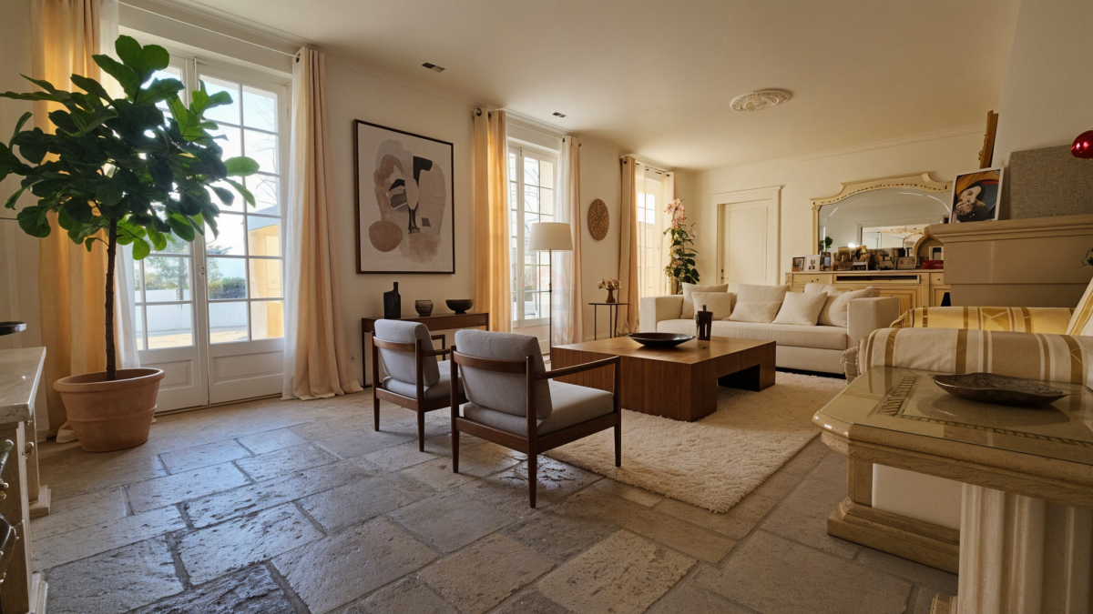 La villa principale, développant environ 350 m² habitables, se distingue par ses volumes généreux, sa luminosité naturelle et la qualité de ses prestations.