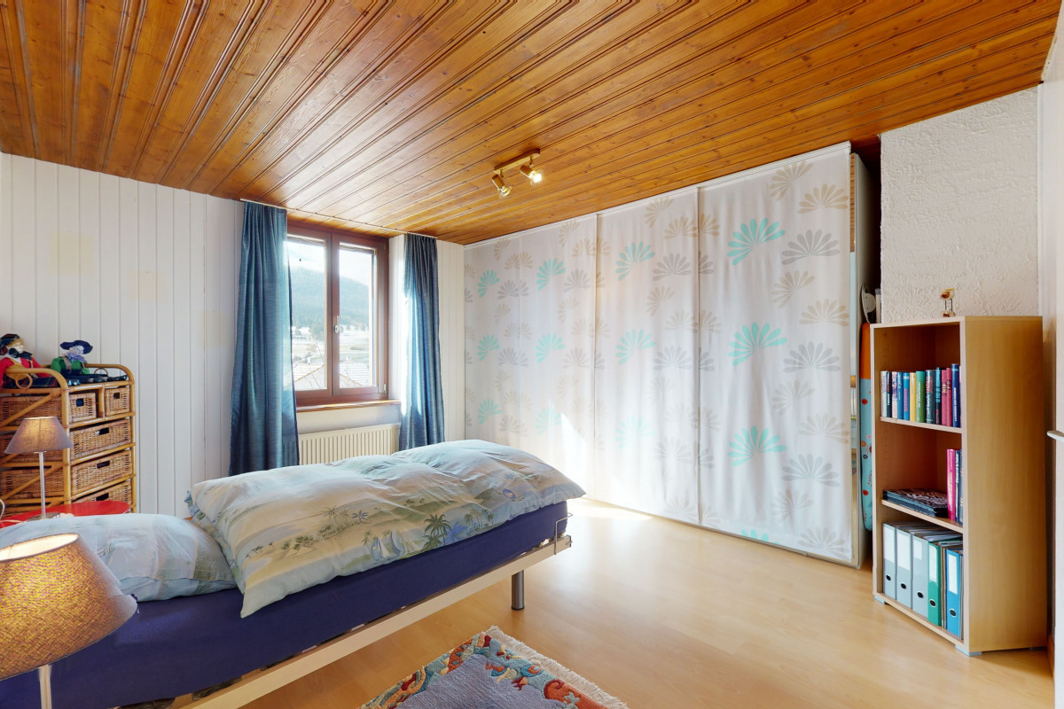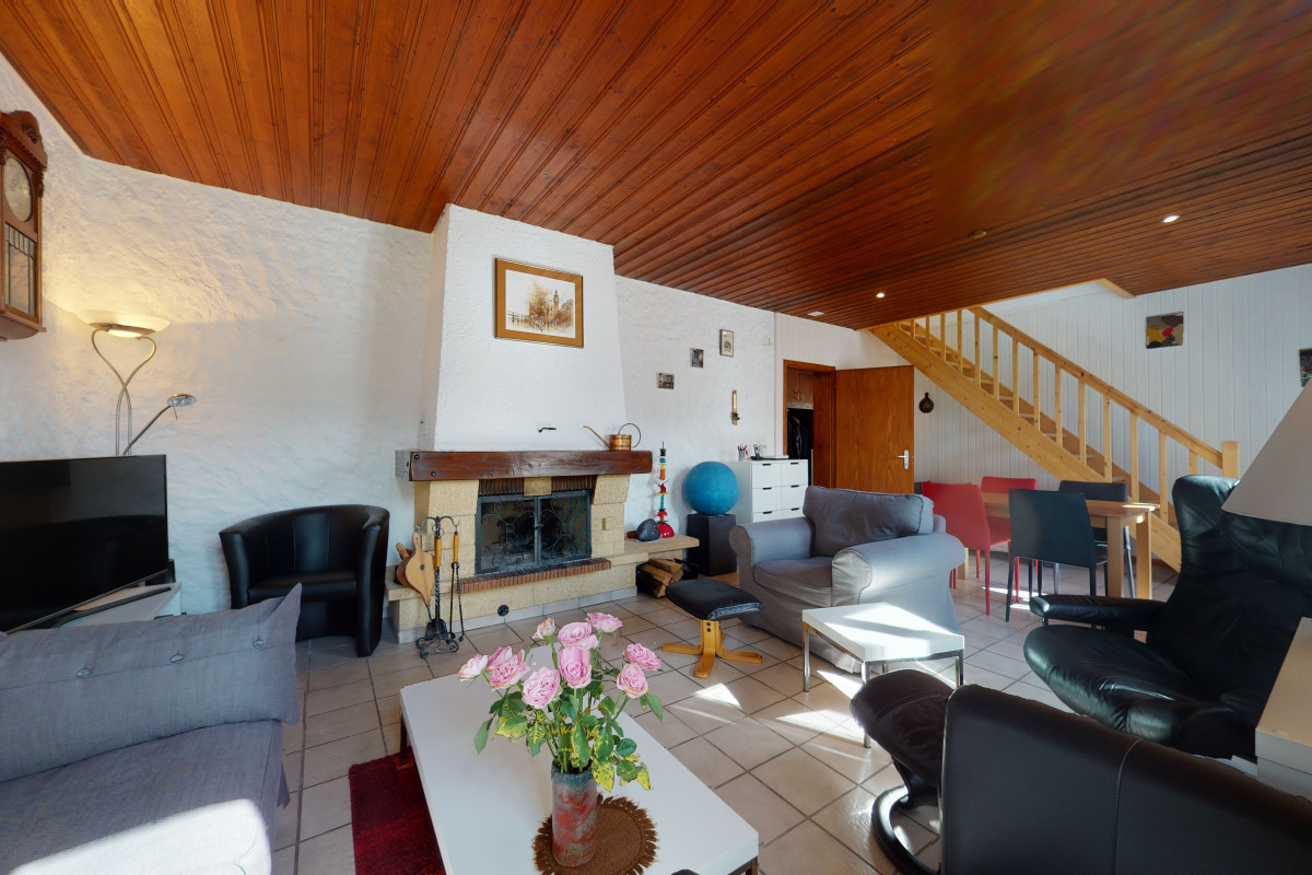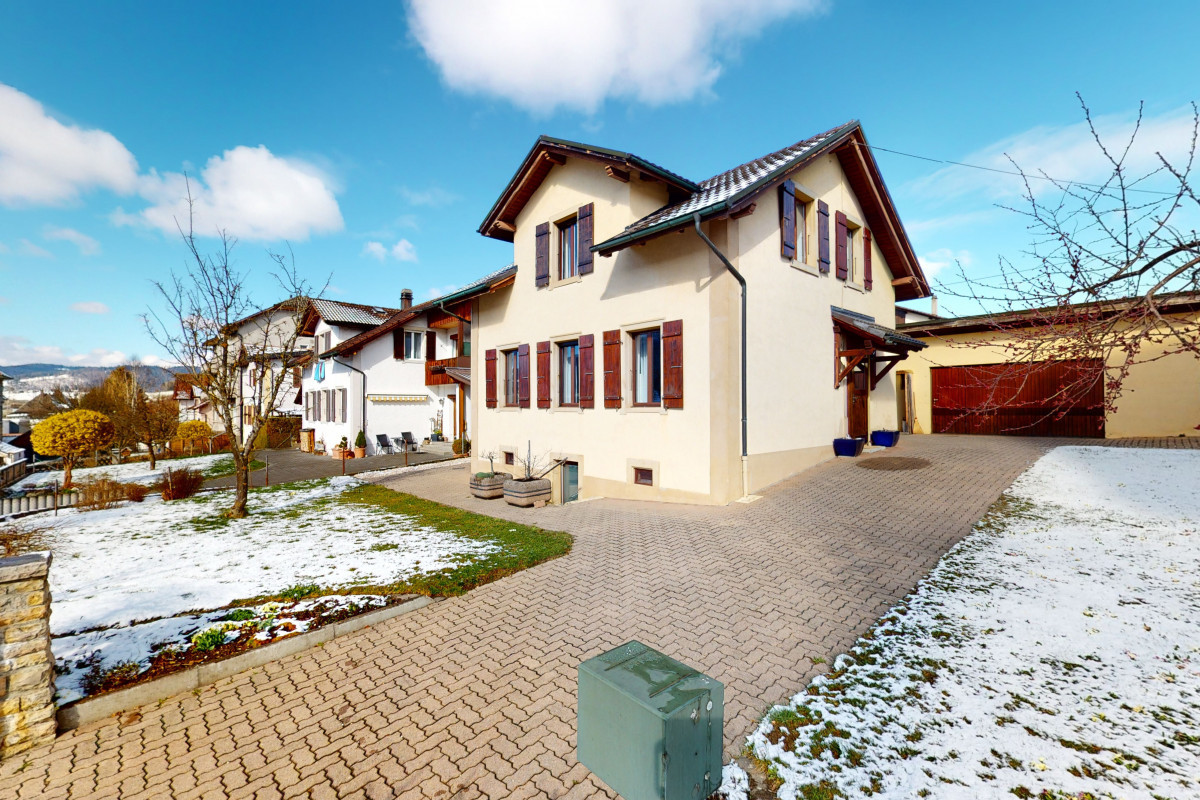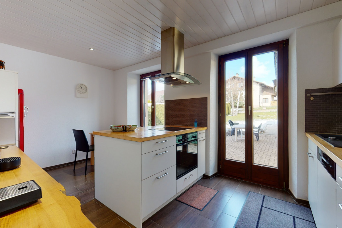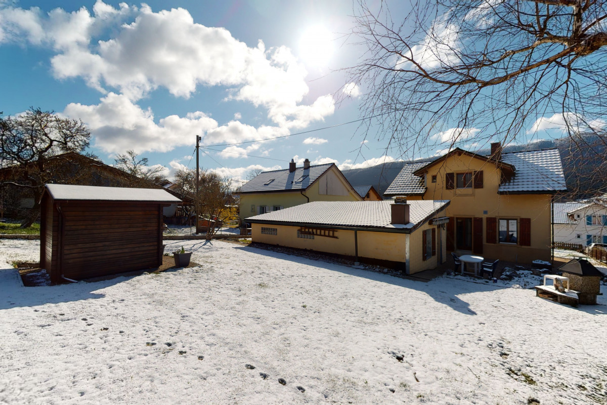 This magnificent 3.5 room villa (98 m2 living space) ideally exposed and located in a very quiet area benefits from a splendid garden and an additional building with a 20 m2 studio and a double garage. The kitchen, the 2 bathrooms, the view on the countryside, the excellent state of maintenance, the parquet floors in the bedrooms, the storage possibilities or the luminous living room with fireplace are all assets that will seduce you. To visit without delay!