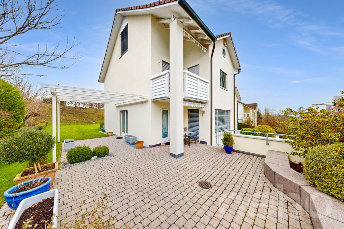 4.5-Zimmer Einfamilienhaus mit fantastischer WeitsichtDiese hochwertige Liegenschaft an begehrter Wohnlage lässt keine Wünsche offen. Die moderne Architektur mit offenem Wohnkonzept, die beeindruckende Aussicht und der grosszügige Aussenbereich versprechen puren Wohngenuss. Weitere Highlights sind die geräumige Küche mit Frühstücksbar, das helle Wohnambiente sowie das Badezimmer mit Eckbadewanne...