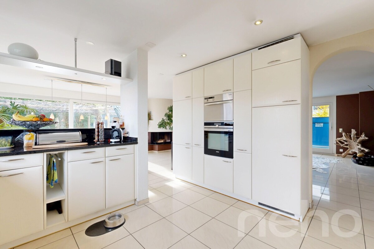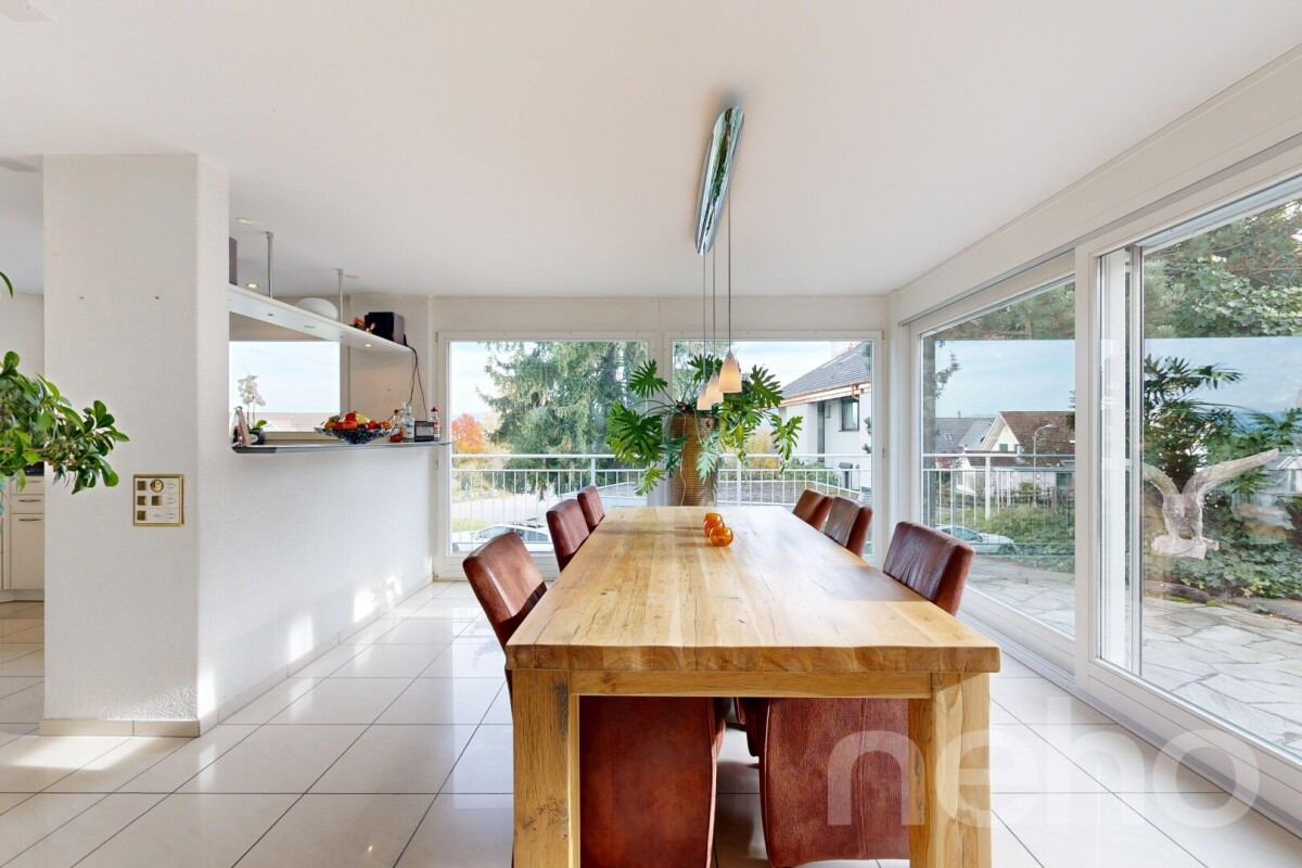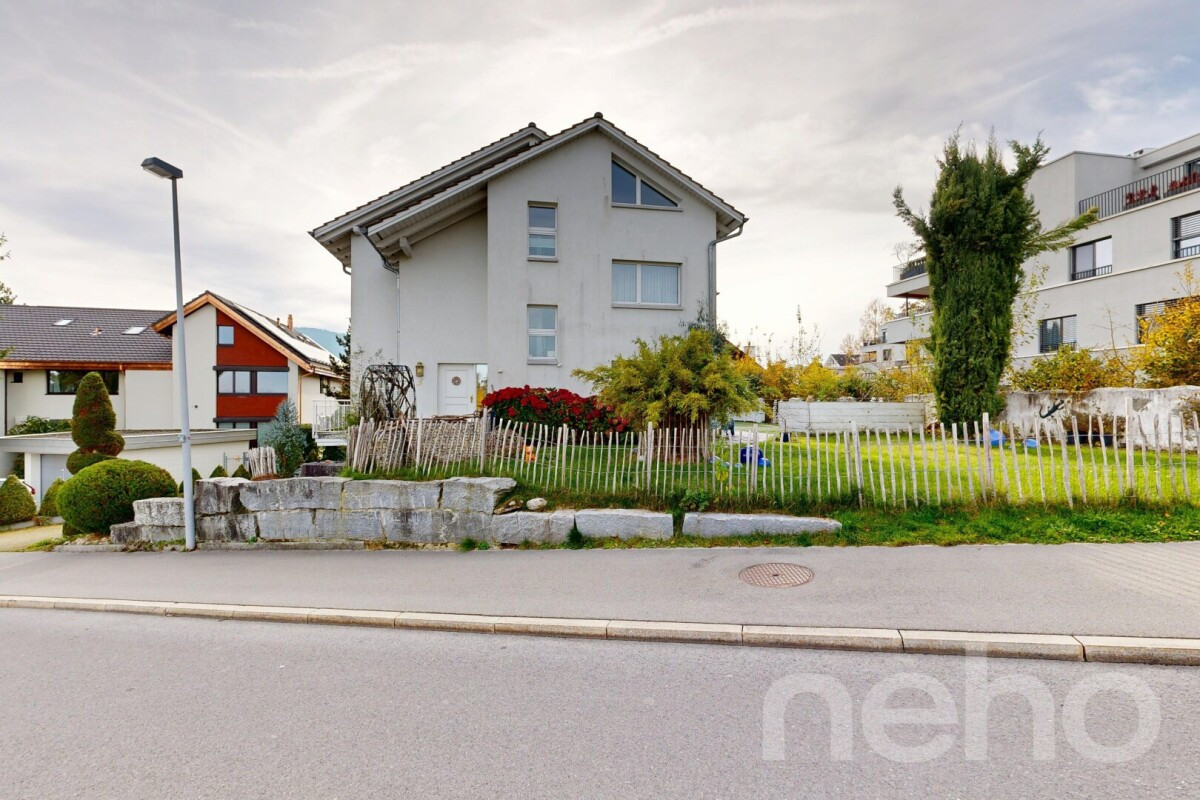 Dieses dreistöckige Einfamilienhaus vereint Raum Stil und eine attraktive Lage. Es bietet nicht nur viel Platz sondern auch zahlreiche Annehmlichkeiten für Familien oder Paare mit gehobenem Anspruch.Die Wohnbereiche zeichnen sich durch hochwertige Böden und ein stilvolles Cheminée aus. Die halb offene grosszügige Küche ist funktional und kommunikativ zugleich.Der nahtlose Übergang in den gepflegten Garten mit Teich, Pergola und Feuerstelle ist eine Oase zum Verweilen. Der ausgebaute Dachstock verfügt über eine Terrasse mit Weitblick bis zum See ideal zum Entspannen oder Arbeiten mit Aussicht. Auf jeder der beiden oberen Etagen befindet sich ein Badezimmer was den Wohnkomfort zusätzlich erhöht. Im Untergeschoss befinden sich eine Doppelgarage praktische Abstellräume sowie eine Waschküche. Kindergarten und Schulen sind bequem zu Fuss erreichbar.Ein vielseitiges Zuhause mit Potenzial Charme und einer Umgebung die sowohl Ruhe als auch Nähe zur Infrastruktur vereint.