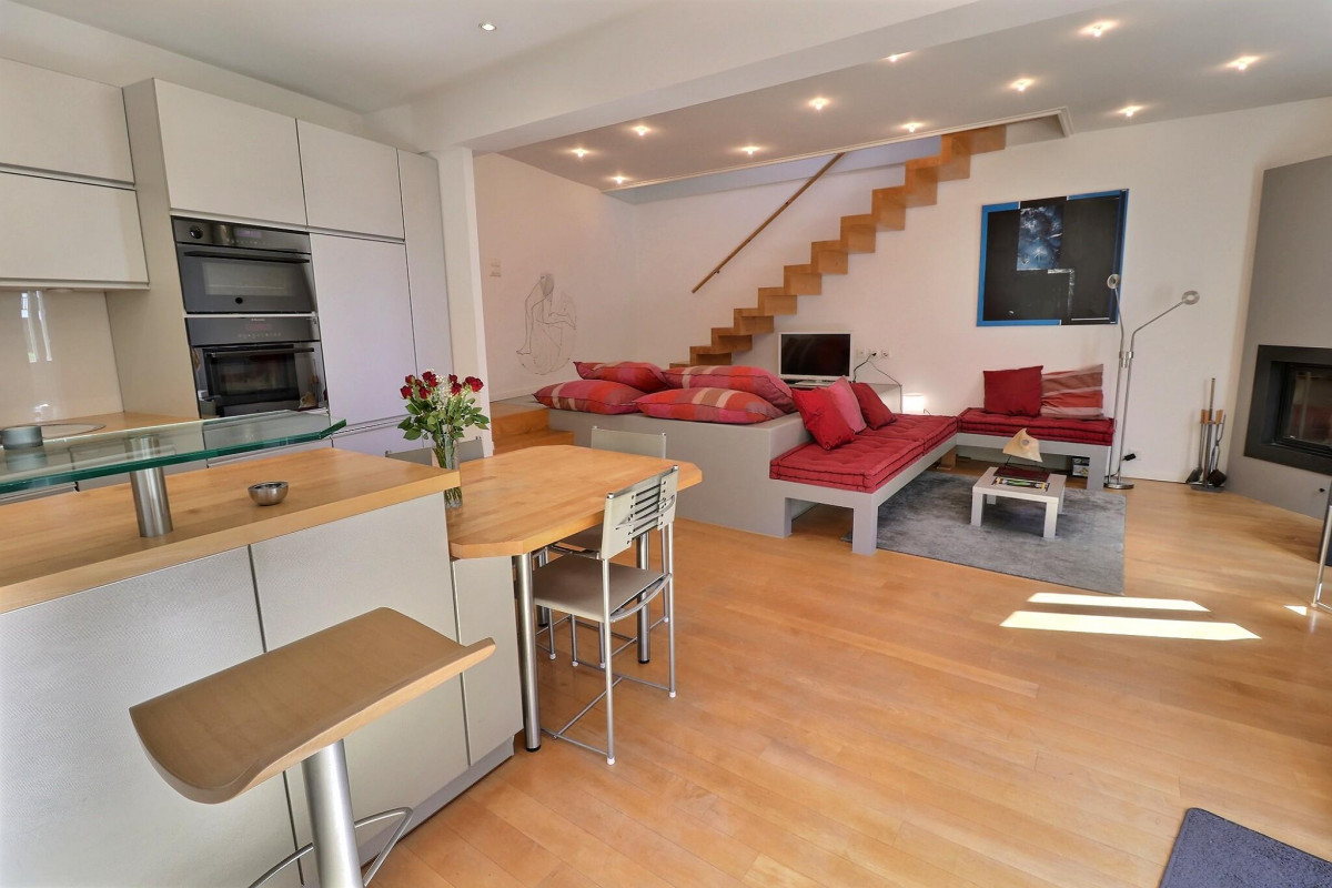 À l?étage, l?espace nuit style loft comprend une chambre confortable ainsi qu?une salle de bains contemporaine avec douche à l'italienne, aménagée avec goût. Sous les combles, un espace supplémentaire offre de nombreuses possibilités d?aménagement, que ce soit en chambre, bureau ou coin détente, selon les besoins.