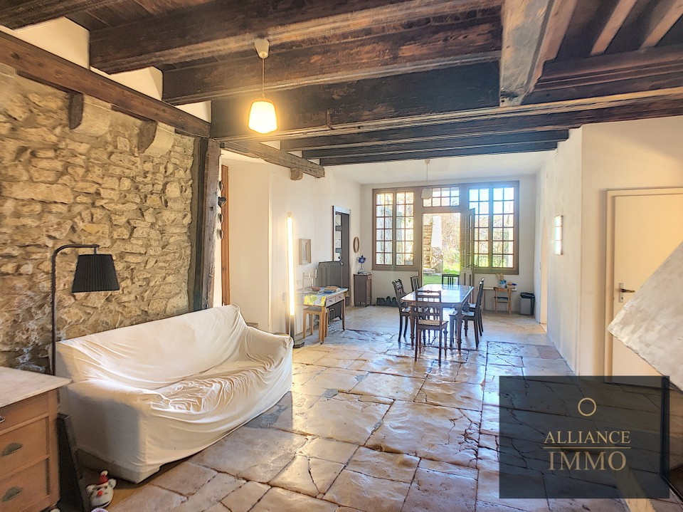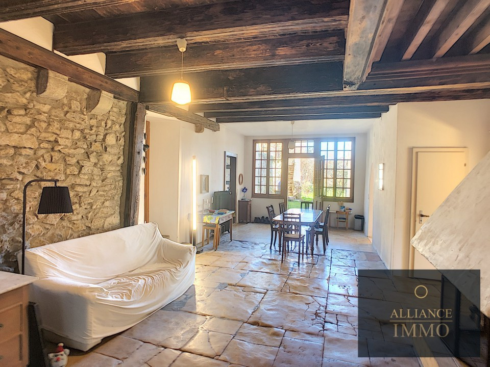 A l’étage un appartement de 210 m2 de 4 chambres, une salle à manger séjour cheminée, une salle de bain avec baignoire-wc-lavabo, un wc lavabo. Une cuisine. Et accès terrasse et jardin.