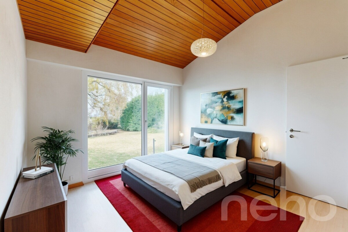 Maison d'architecte construite sur des demi niveaux et agrandie en 1991 (extension et sous-sol), cette propriété édifiée avec des matériaux de qualité allie avec élégance le charme intemporel de l'ancien au confort raffiné du moderne. Elle dispose de 4 chambres, avec la possibilité d'en créer une 5?Le sous-sol, chauffé et entièrement aménagé, offre un espace polyvalent pouvant accueillir un bureau, une salle de sport, une salle de loisirs ou même un home cinéma, selon vos envies.Entièrement rénovée avec soin et goût, la maison séduit par ses volumes généreux, sa luminosité exceptionnelle et la finesse de ses finitions, offrant un cadre de vie chaleureux et accueillant.Située dans un quartier résidentiel paisible et sans nuisances, elle bénéficie d'une belle vue sur le lac et d'un environnement verdoyant, idéal pour profiter de moments de détente ou partager des instants conviviaux en famille ou entre amis.Parfaite pour une famille en quête d'espace, de confort et de sérénité, cette maison combine harmonieusement proximité des commodités et quiétude d'un cadre naturel préservé.