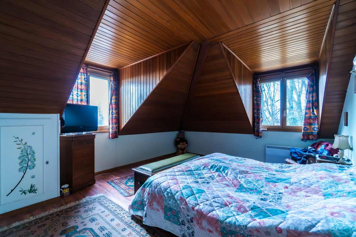 La partie nuit offre plusieurs chambres réparties intelligemment sur les étages, permettant à chacun de préserver son intimité. Un vaste galetas accessible de plain-pied ouvre de multiples possibilités : atelier, espace créatif ou rangement généreux.