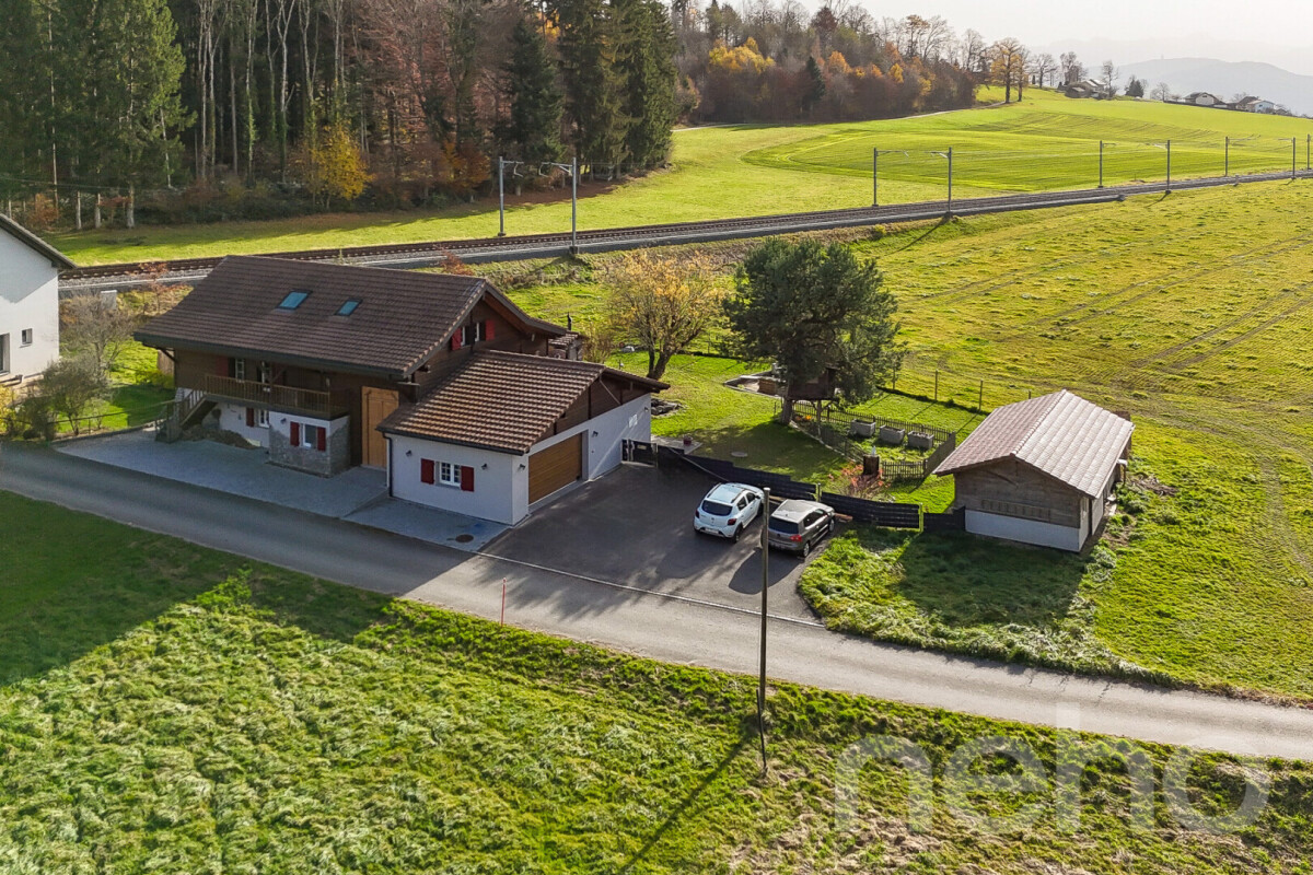 Charmante villa avec grand terrain et cadre bucoliqueDécouvrez cette charismatique villa individuelle. Sur une généreuse parcelle de 1'011 m², elle se niche dans un quartier résidentiel paisible, offrant une belle vue dégagée sur les Alpes. Elle bénéficie de nombreux atouts, tels que ses baies vitrées inondant les espaces de lumière, une chambre indépendante avec salle de douche et son...