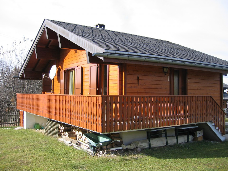 Le chalet a donc 2 chambres à coucher et le niveau inférieur est semi enterré.