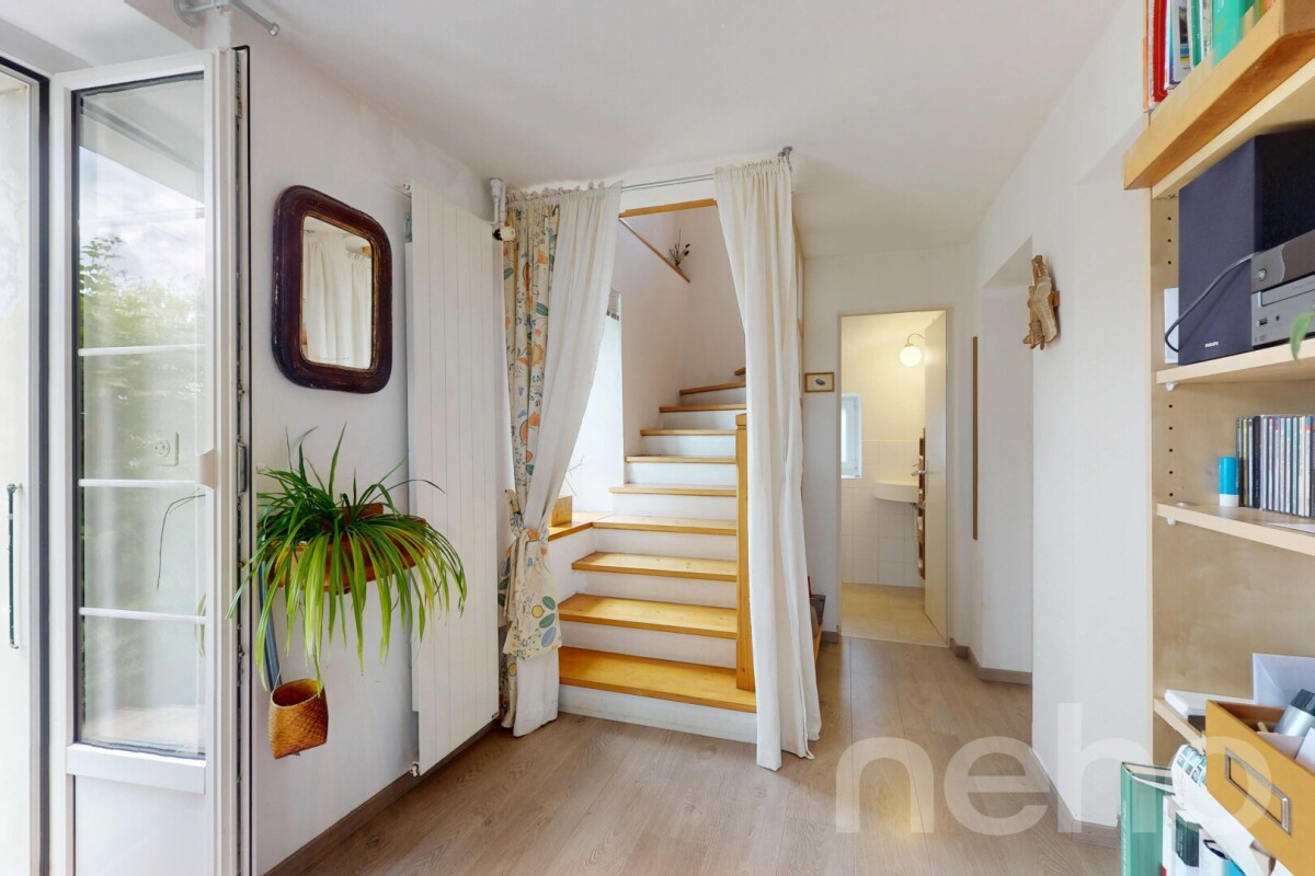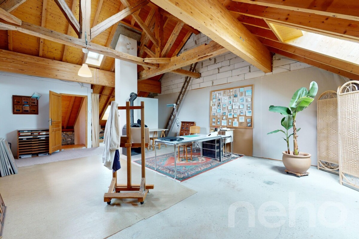 À l'intérieur, le rez-de-chaussée propose une spacieuse pièce de vie où l'on ressent le caractère ancien des lieux, mêlé à un confort moderne. La cuisine, séparée et fonctionnelle, des WC visiteurs et un espace de rangement discret complètent ce niveau. À l'étage, une salle de bain, deux chambres en enfilade offrent diverses possibilités d'aménagement. La plus grande, avec ses plus de 30 m², peut aisément être divisée pour créer une troisième chambre. Les combles, quant à eux, sont prêts à être aménagés selon vos besoins : suite parentale, salle de jeux, atelier ou bureau.