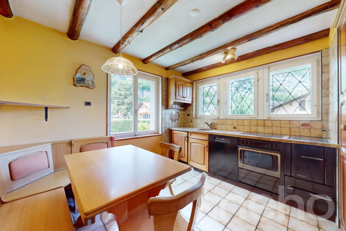 Profitez d'une vaste surface habitable de 145 m², avec une exposition plein sud qui inonde les espaces de lumière naturelle. La maison dispose de 5.5 pièces, dont quatre chambres et deux salles de bains, en plus d'un WC séparé pour plus de commodité.