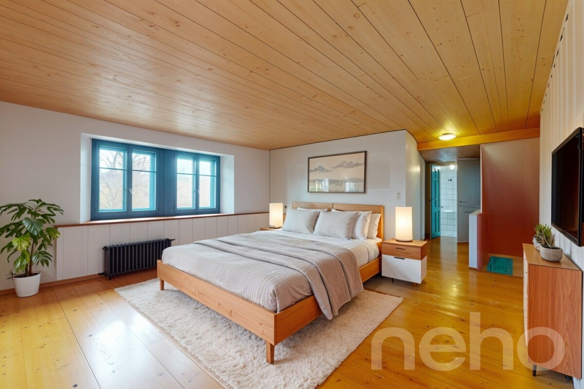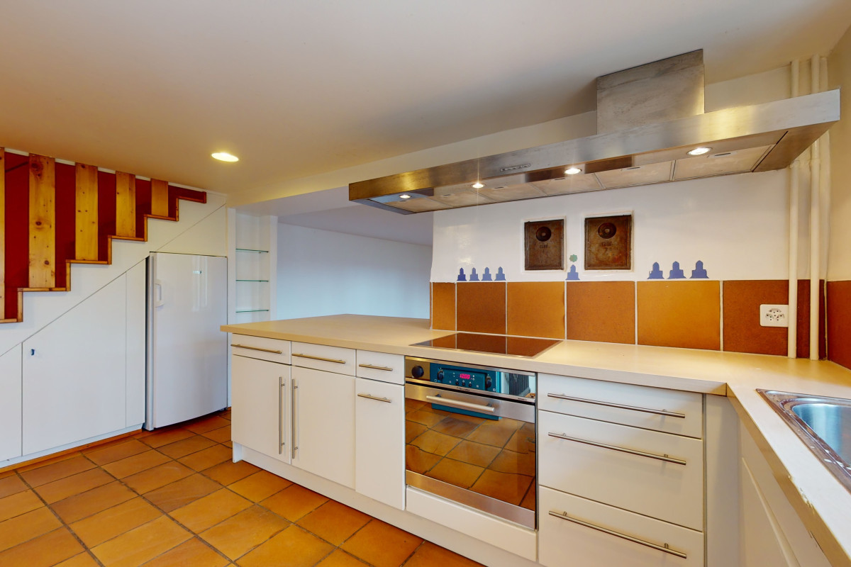 L'immeuble a fait l'objet d'une transformation complète en 1991, et l'appartement a été soigneusement entretenu et amélioré au fil des années. Son caractère atypique séduira les amateurs d'authenticité à la recherche d'un bien chaleureux et familial.